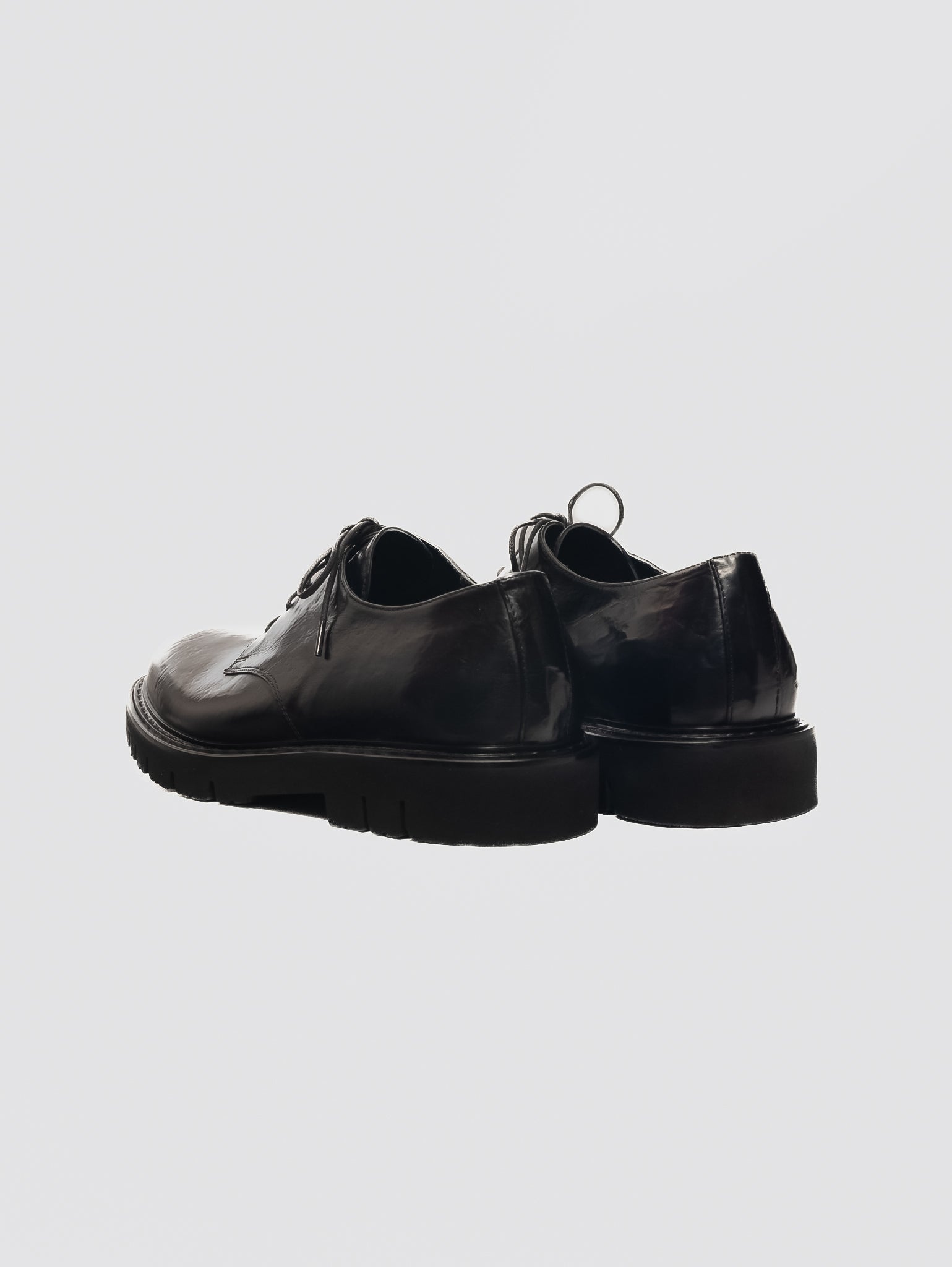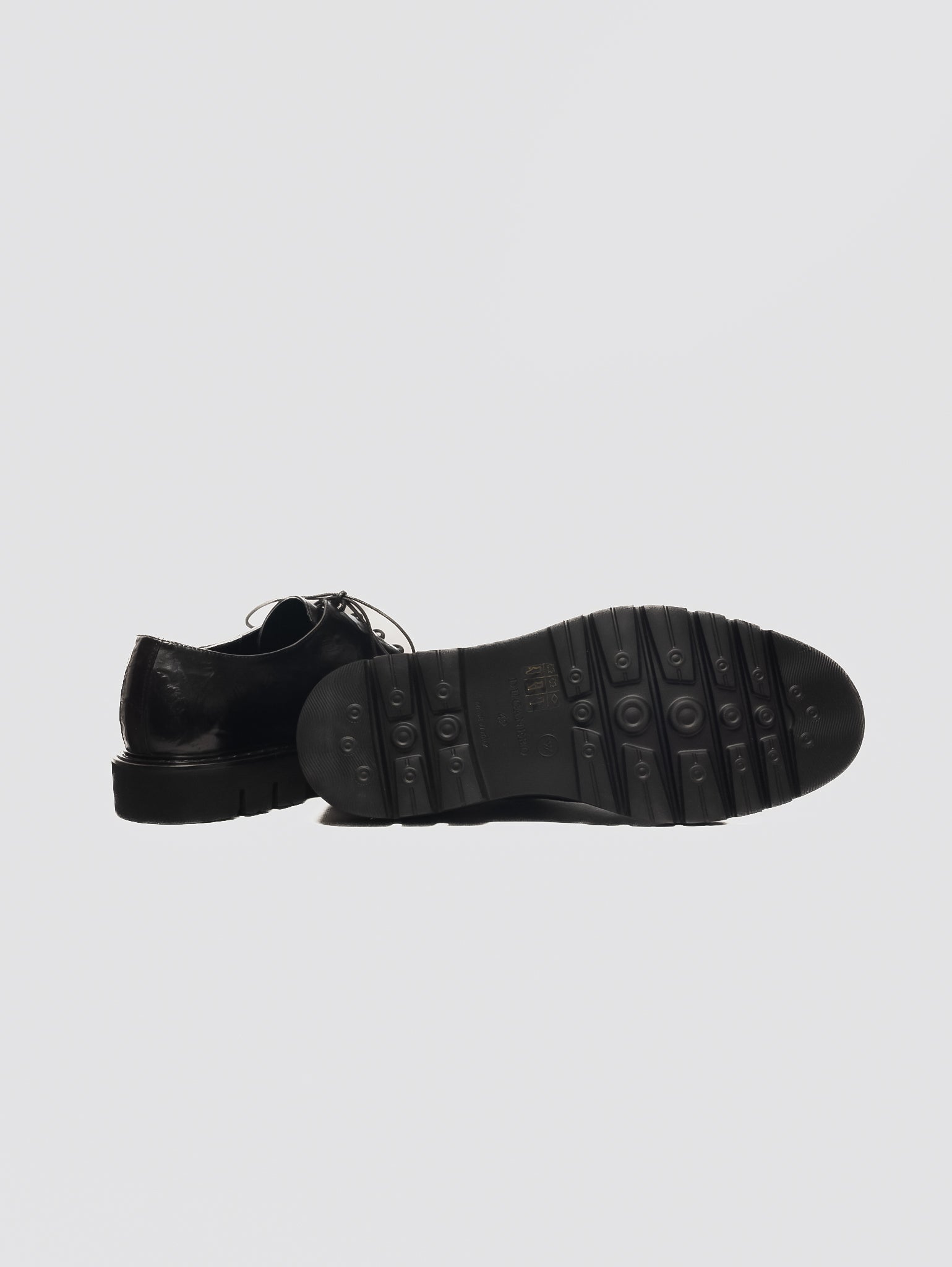 - Questo effetto avviene tramite un trattamento dove la scarpa in vitello naturale viene immersa nel colore.