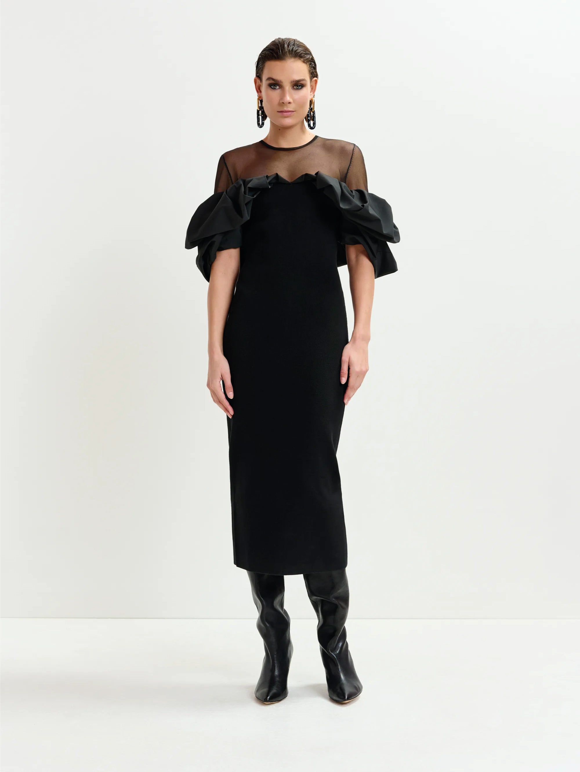 Abito elegante a aderente con volant modello isatis da donna di Essentiel Antwerp.