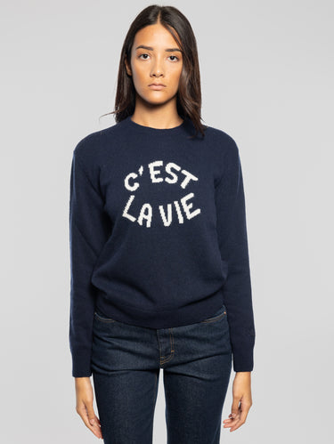 New Queen crew neck sweater with C'est la Vie jacquard embroidery for women by Mc2 Saint Barth.