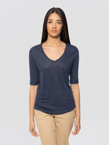 Three-quarter sleeve pure linen T-shirt model Romana for women by NOTSHY.