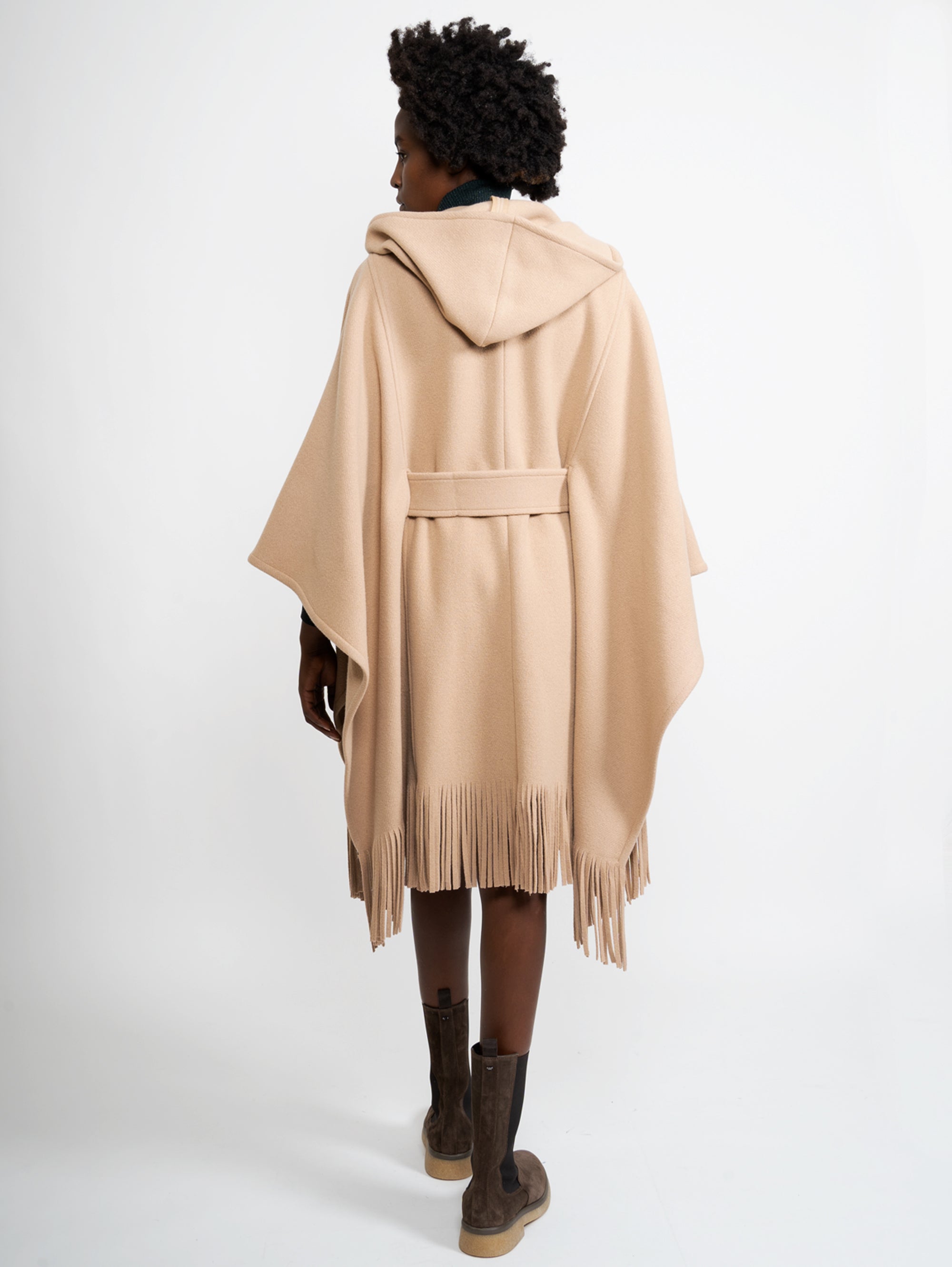Pinko women's cape with fringes and hood.