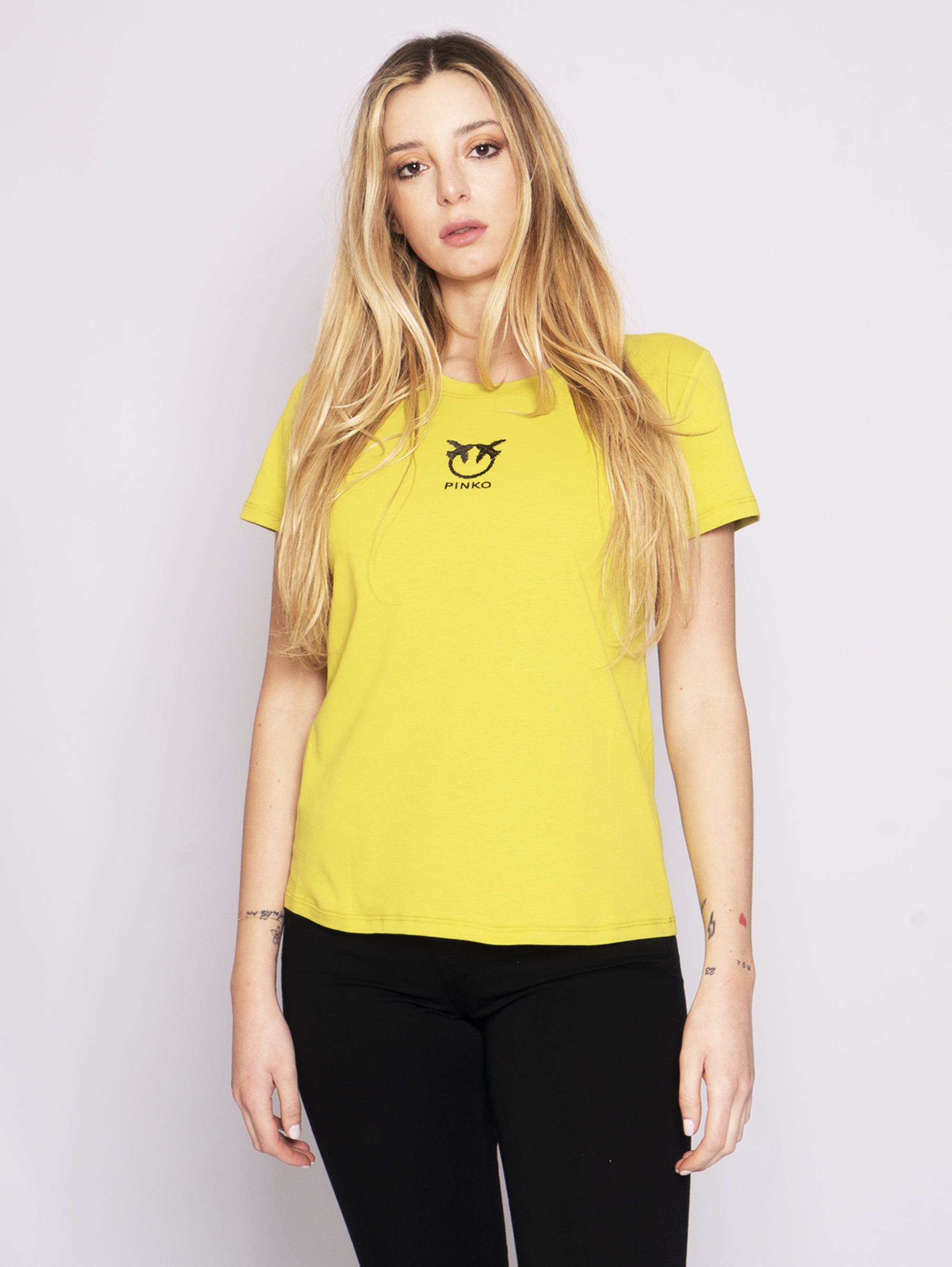 T-shirt with embroidered Birds logo and written "PINKO" by Pinko woman Cotton jersey t-shirt Short sleeves Dress regular Choker Logo with embroidery on the front Composition: 100% Cotton Cod. 1G1619-Y651 BUSSOLANO 3 - T56 - T-shirt - Lime