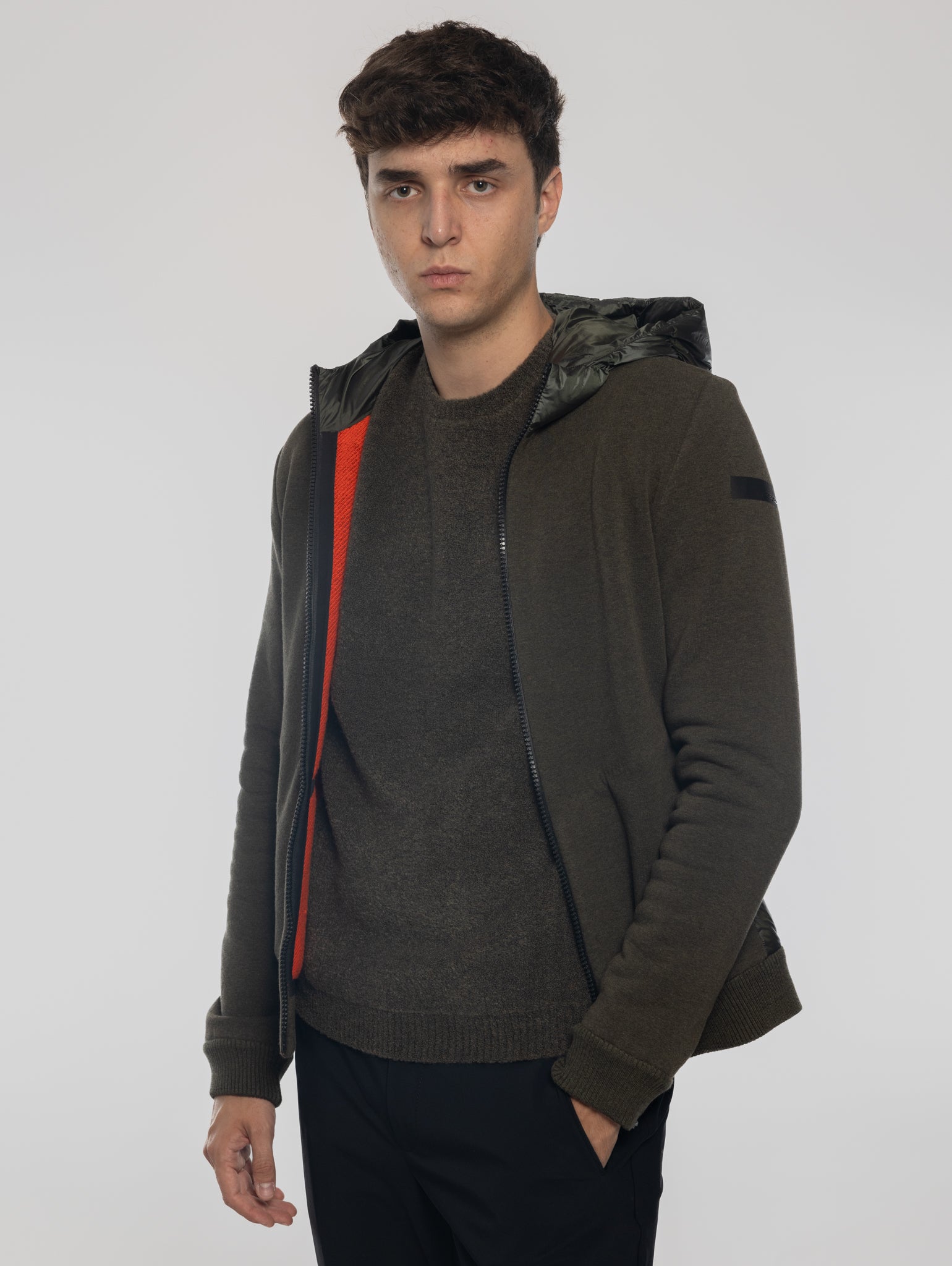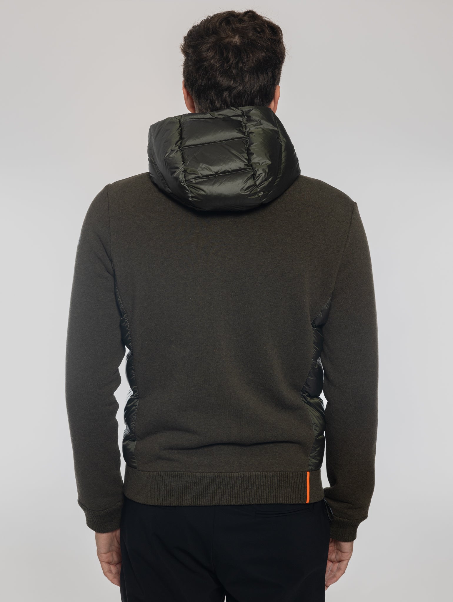 - The inside of the sweatshirt features a contrasting orange color and is reinforced by the internal selective heat-taping system