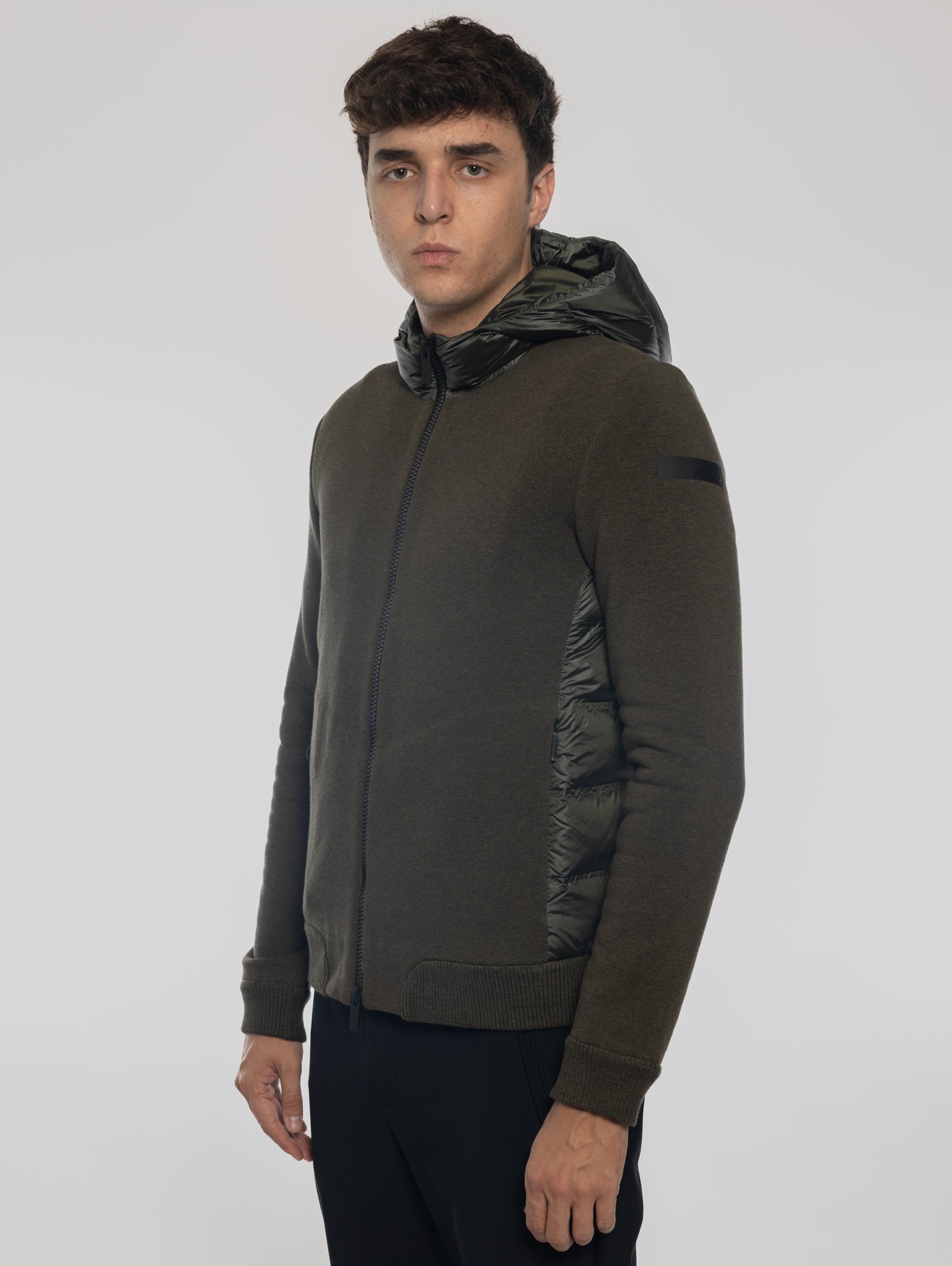 Structured sweatshirt with side inserts in heat-sealed tubular channels for men by RRD.