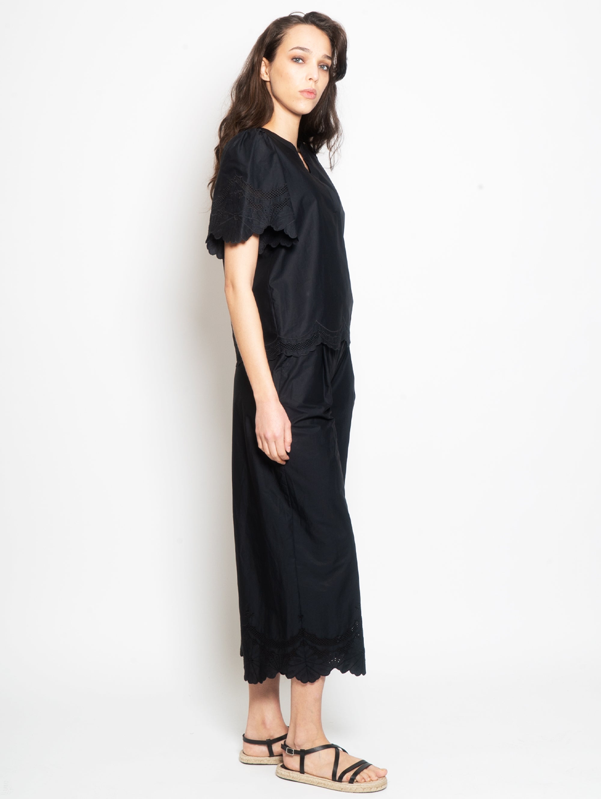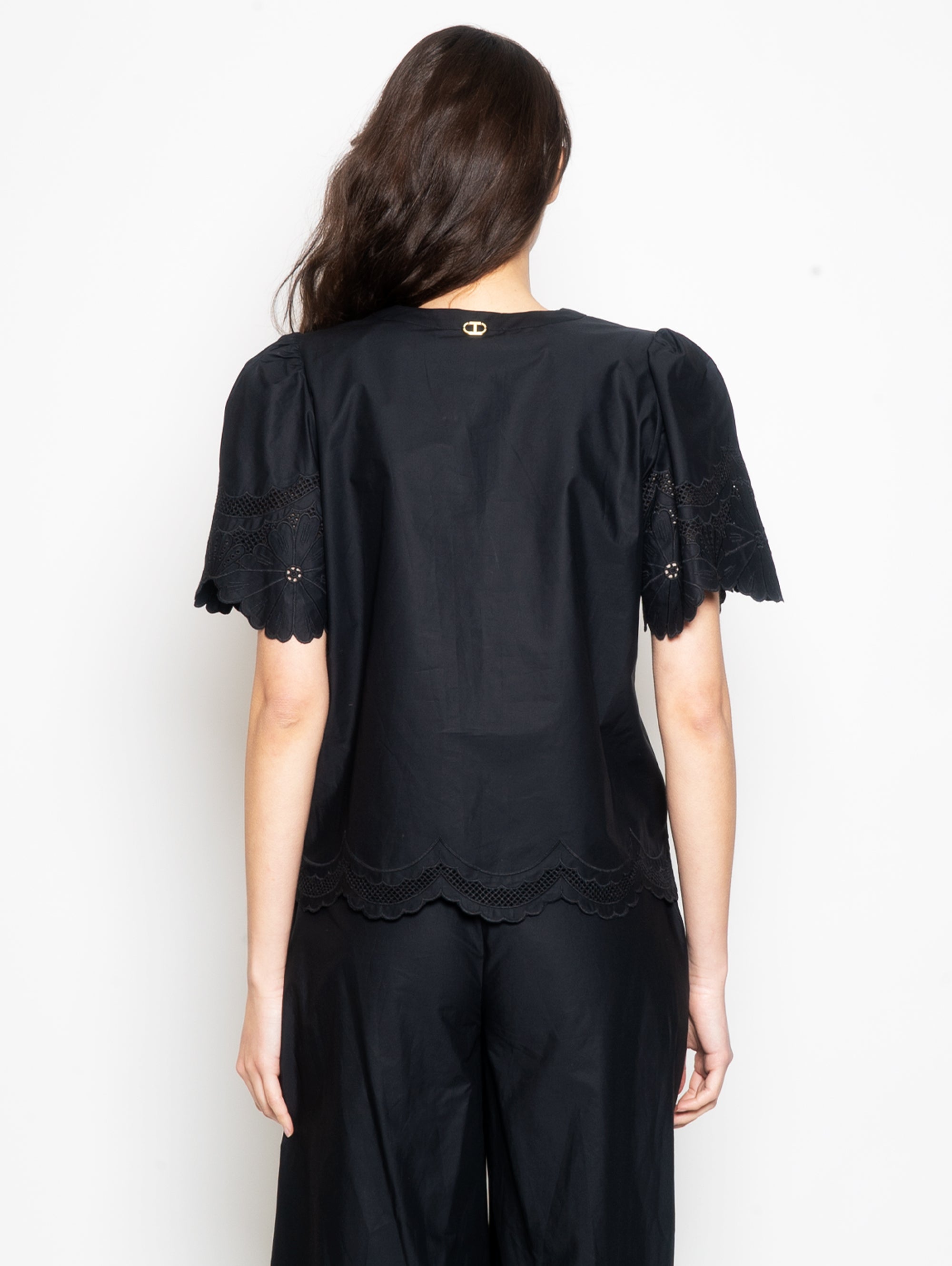 Cotton Blouse with Black Sangallo Profiles