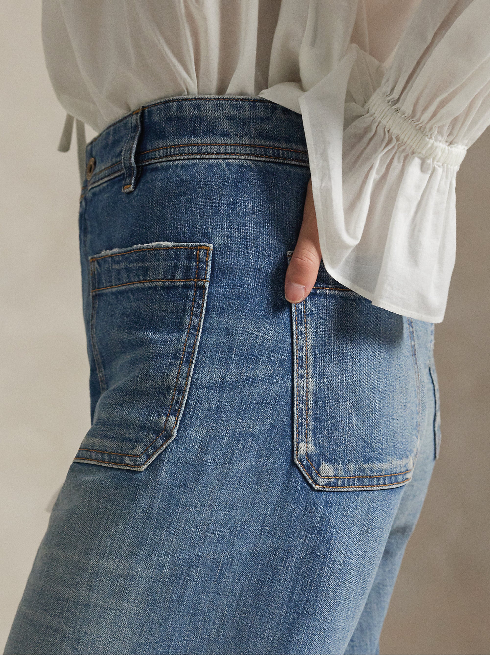 • Jeans realizzato in denim elasticizzato di peso medio