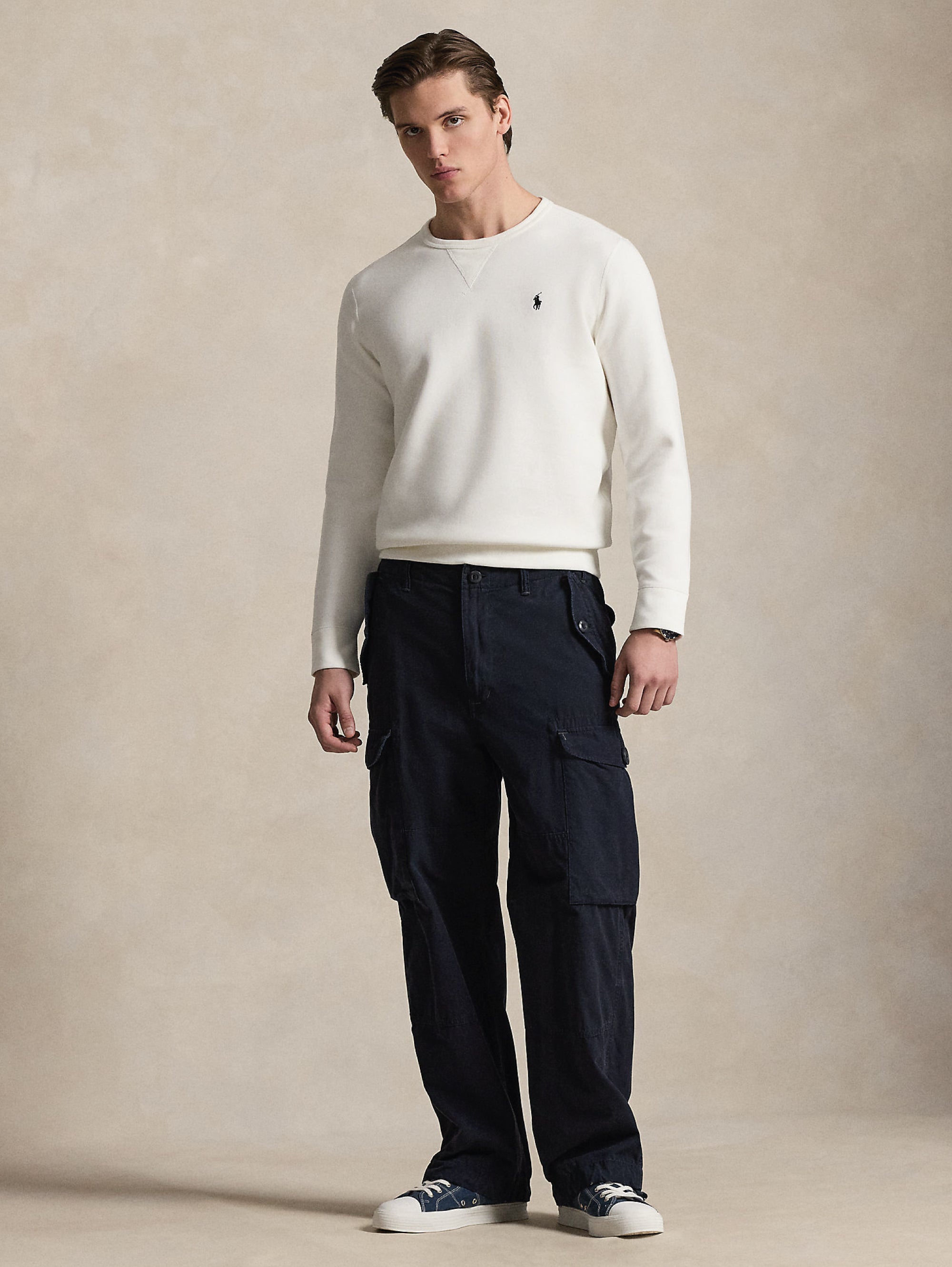 Felpa girocollo in misto cotone realizzata in tessuto liscio a maglia doppia da uomo di Polo Ralph Lauren.
