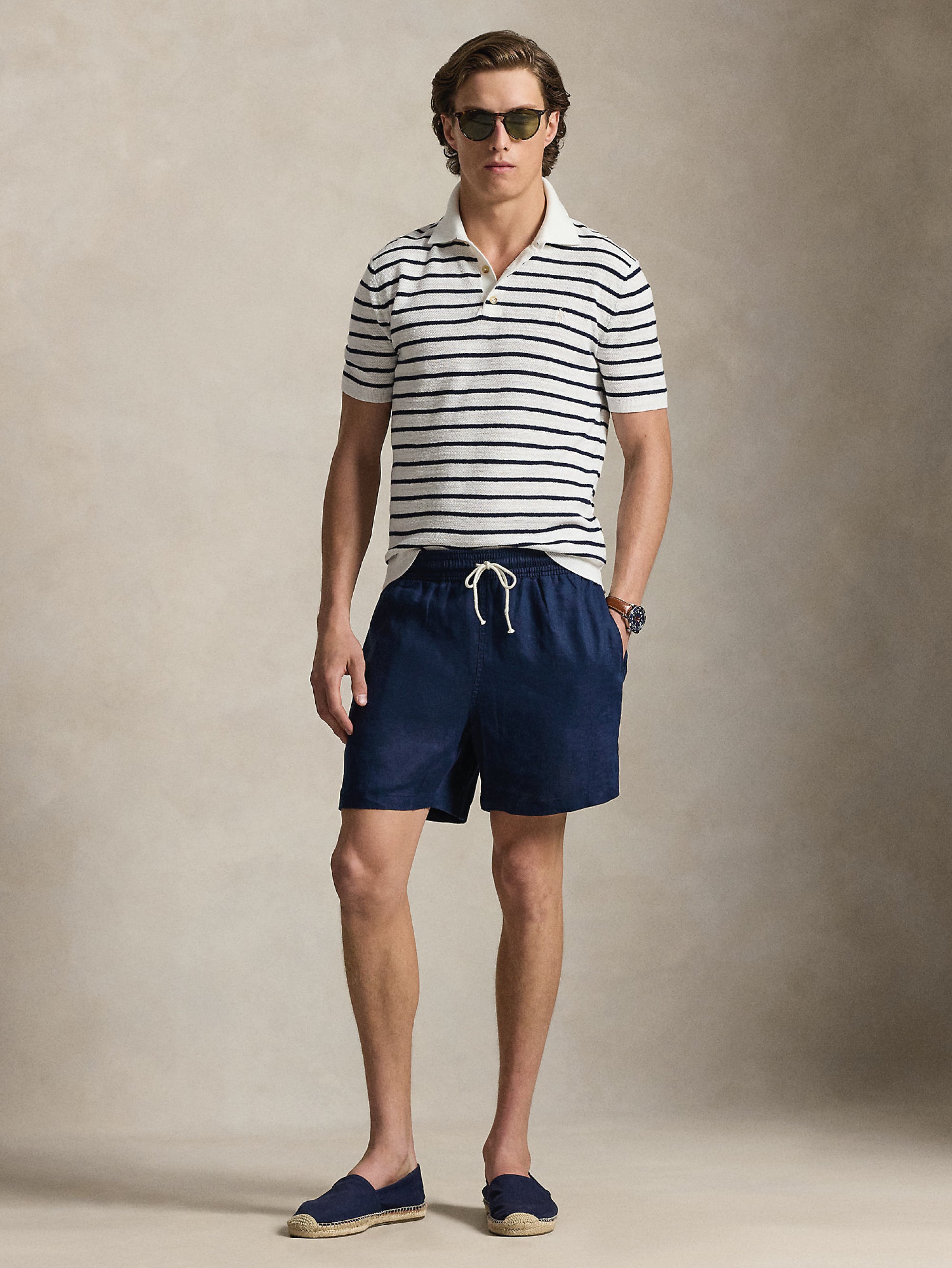 Polo a righe in maglia di cotone misto lino regular fit da uomo di Polo Ralph Lauren.