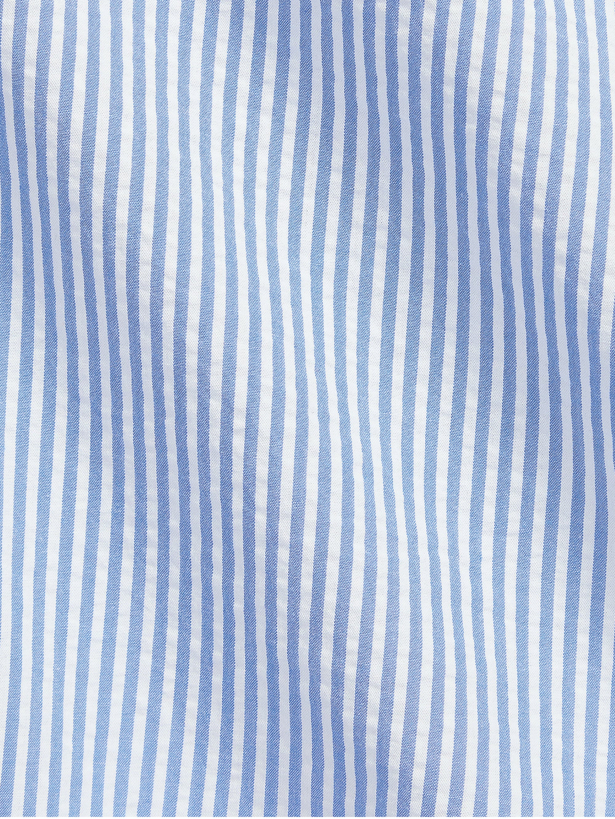 Camicia Maniche Corte Seersucker a Righe Celeste