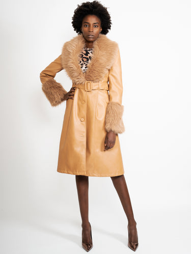 Cappotto in ecopelle con dettagli in ecofur da donna di Aniye By.