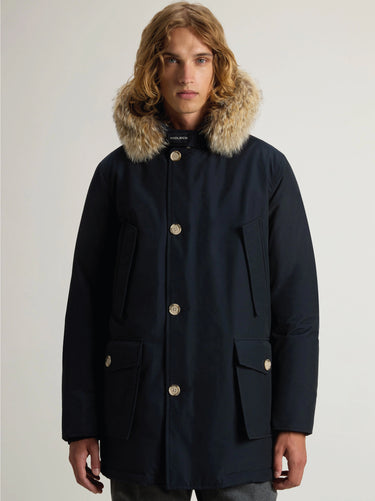 Giaccone parka in ramar con cappuccio con pelliccia removibile da uomo di Woolrich.