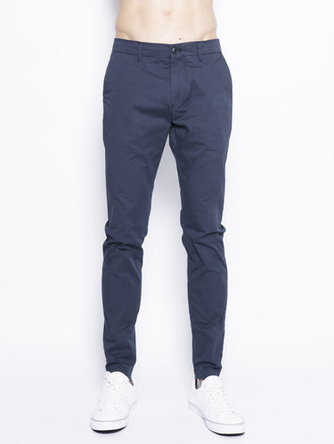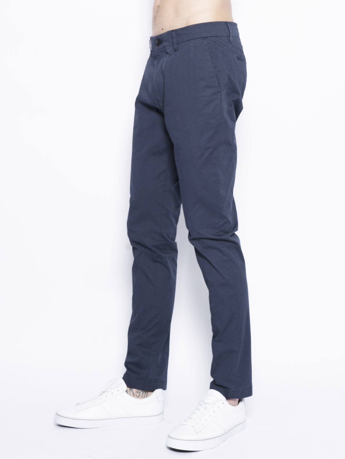 Pantalone da uomo di Closed modello Clifton Skinny in cotone elasticizzato con finiture colorate internamente. Dotato di due tasche alla francese, due tasche a filo posteriori e allacciatura con zip e bottone.