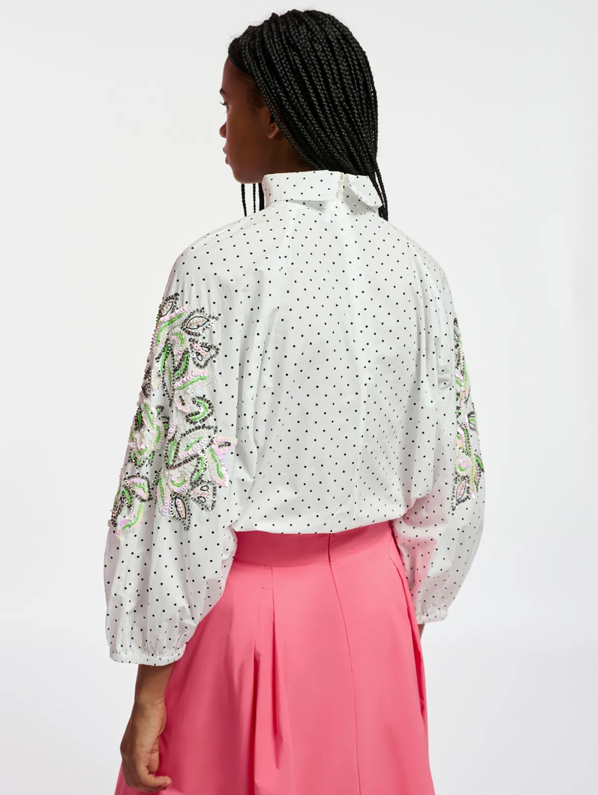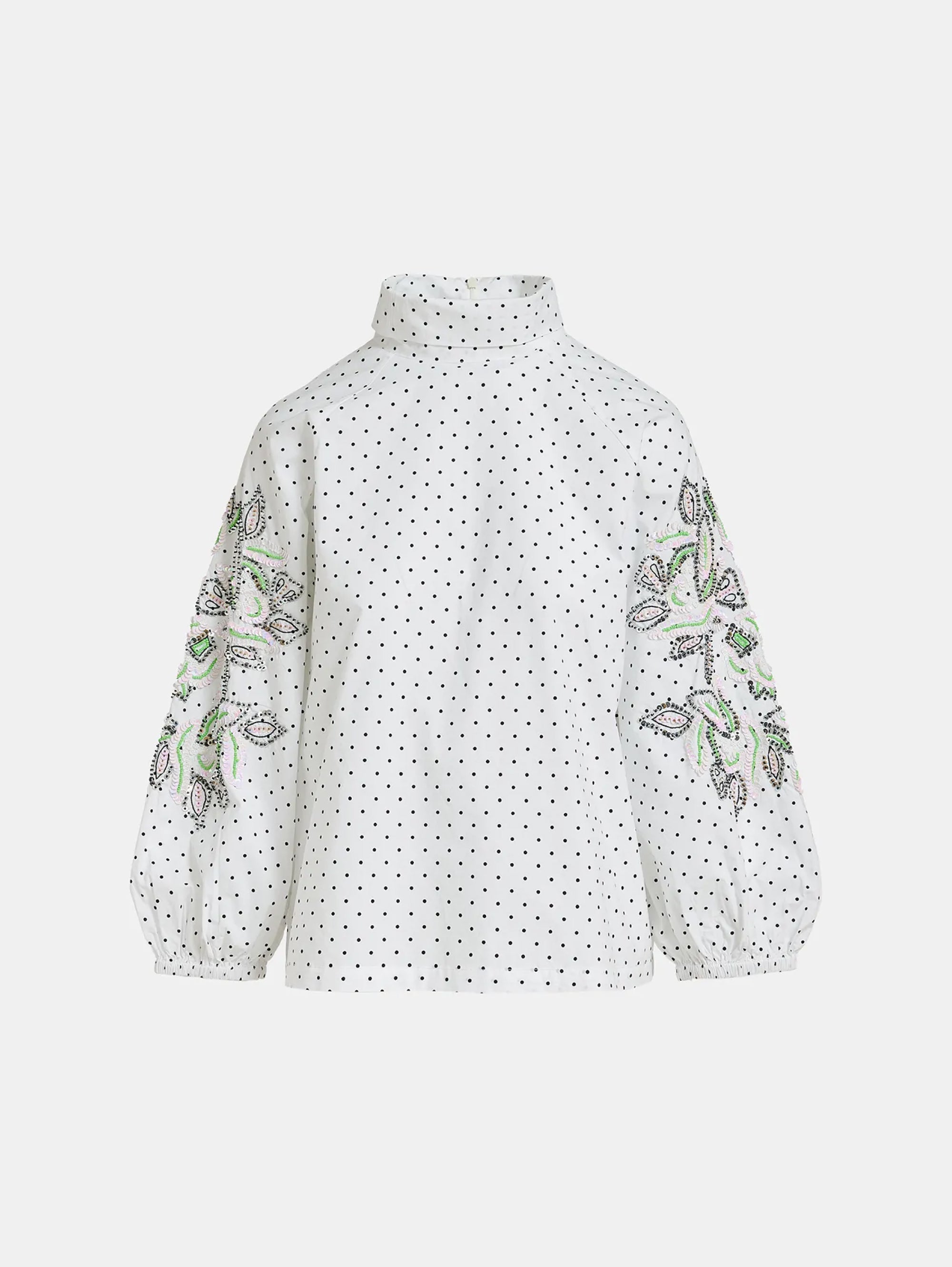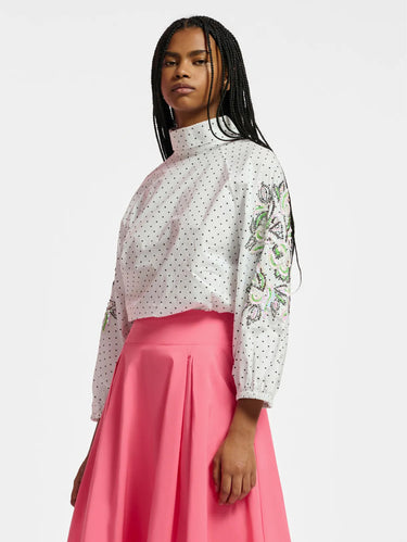 Blusa a Pois con Ricami Bianco