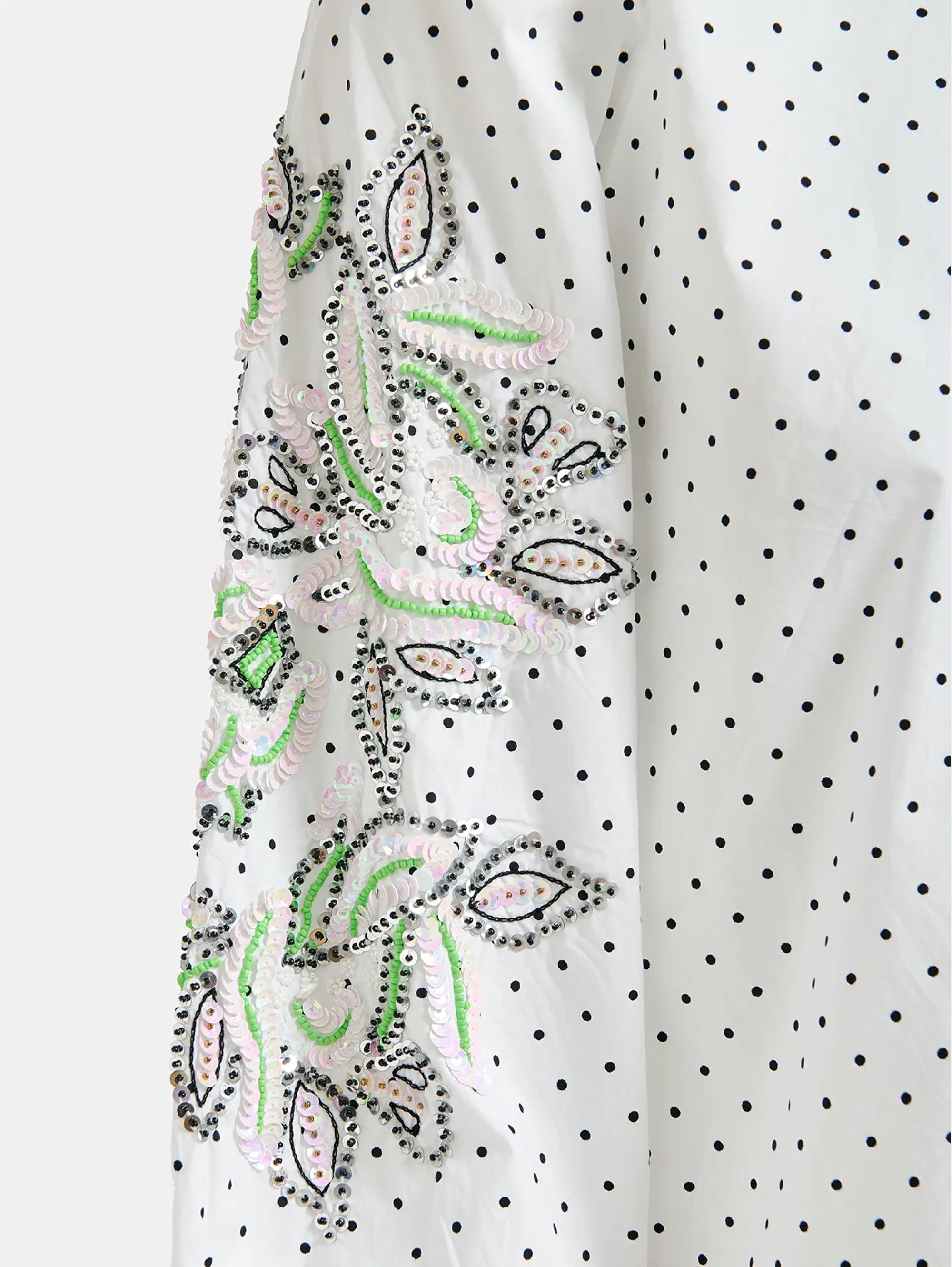 - Ricami con pailletes e perline sulle maniche