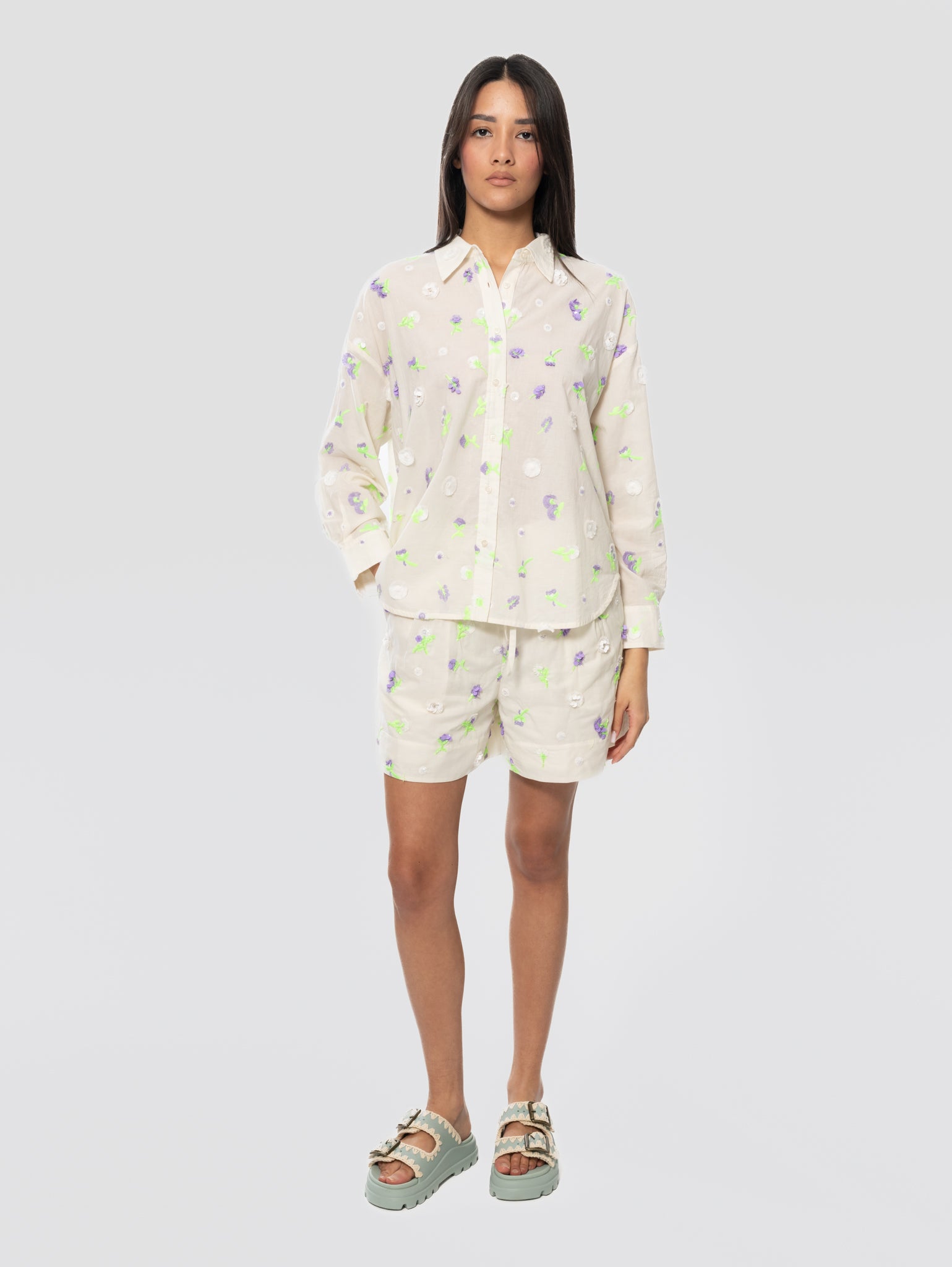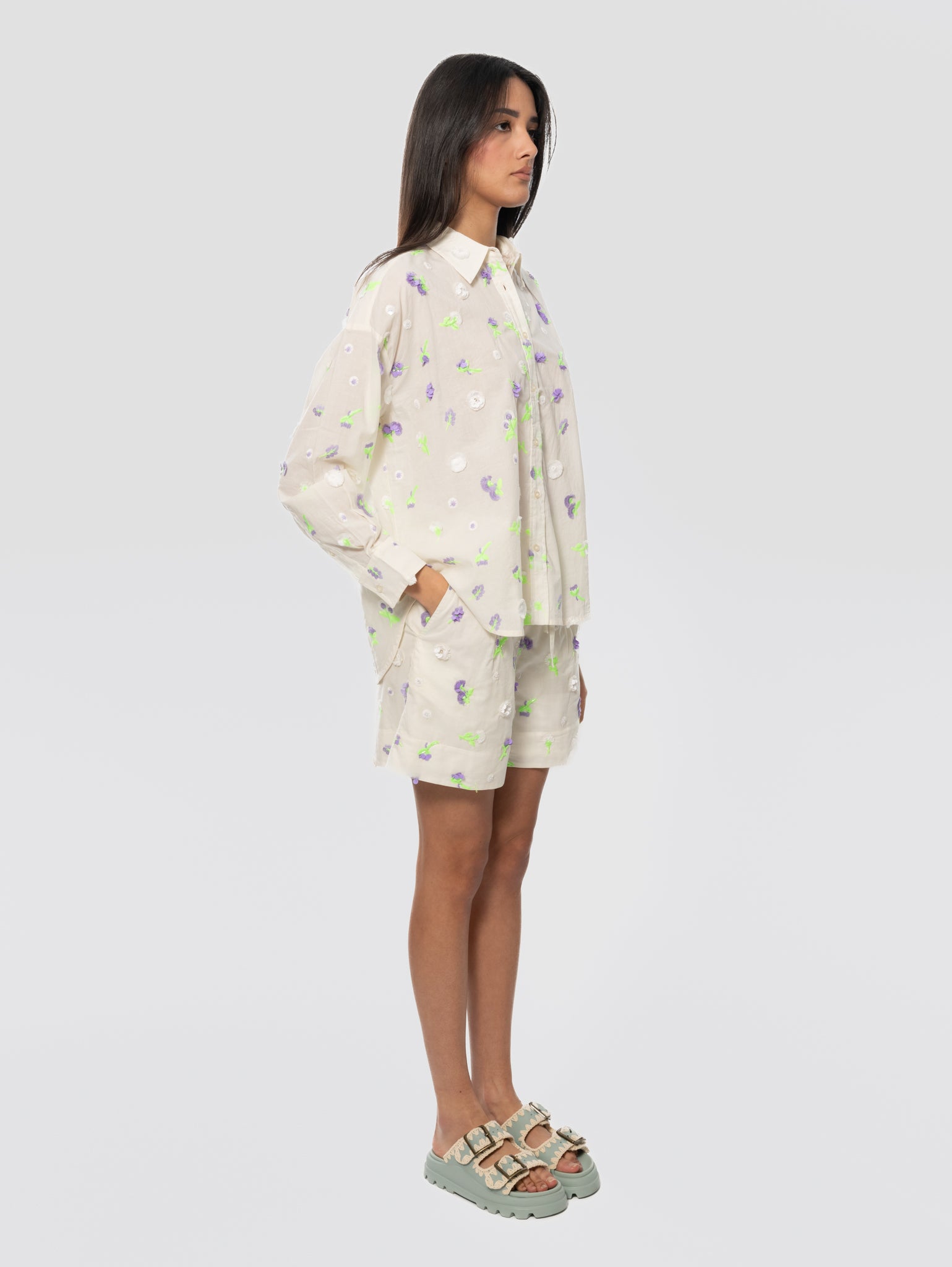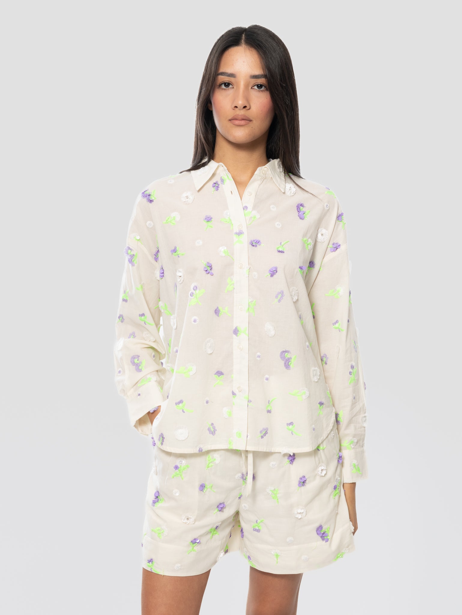 - Cod. JELENA - J1OW - Embroidered Mini Shorts - Combo1 Off White