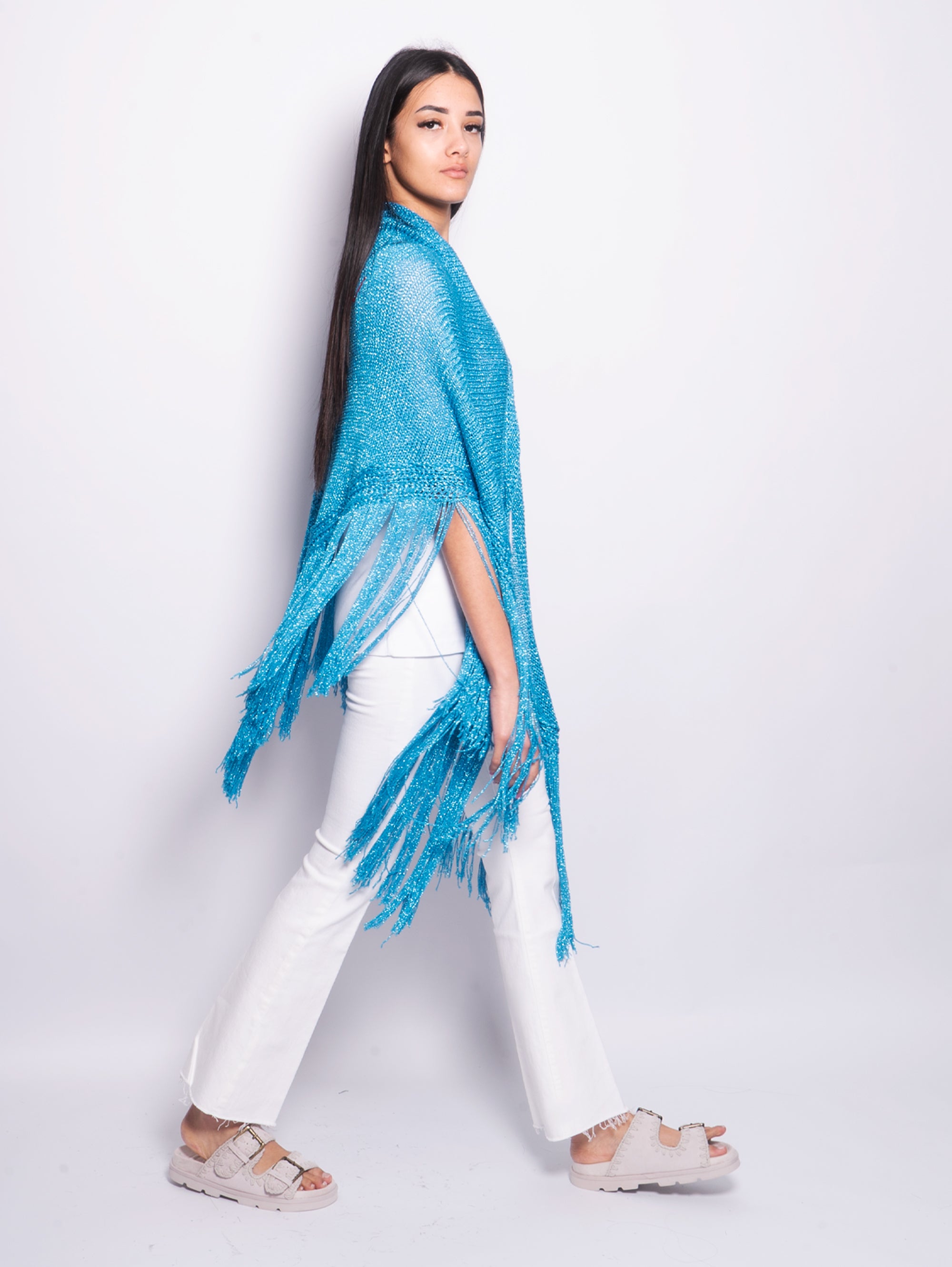 Scialle in Maglia di Lurex con Frange Oceano