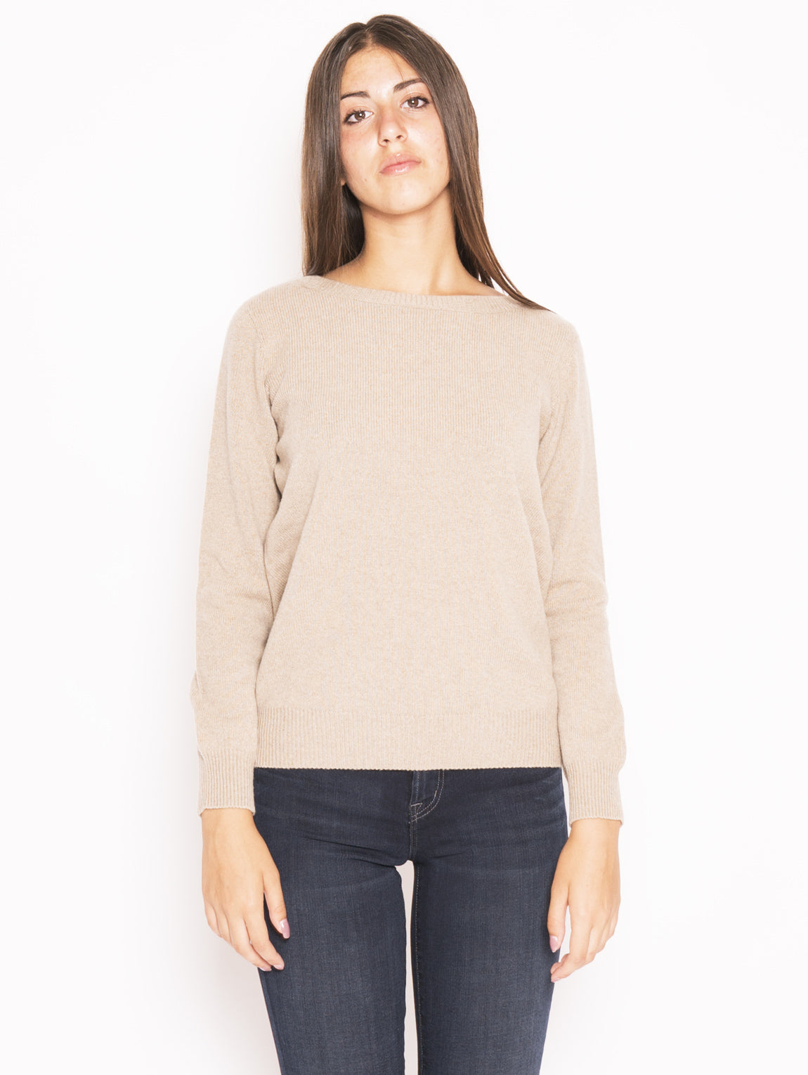 Maglia Girocollo in Lana e Cashmere Beige