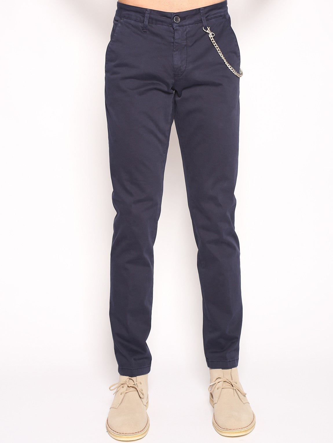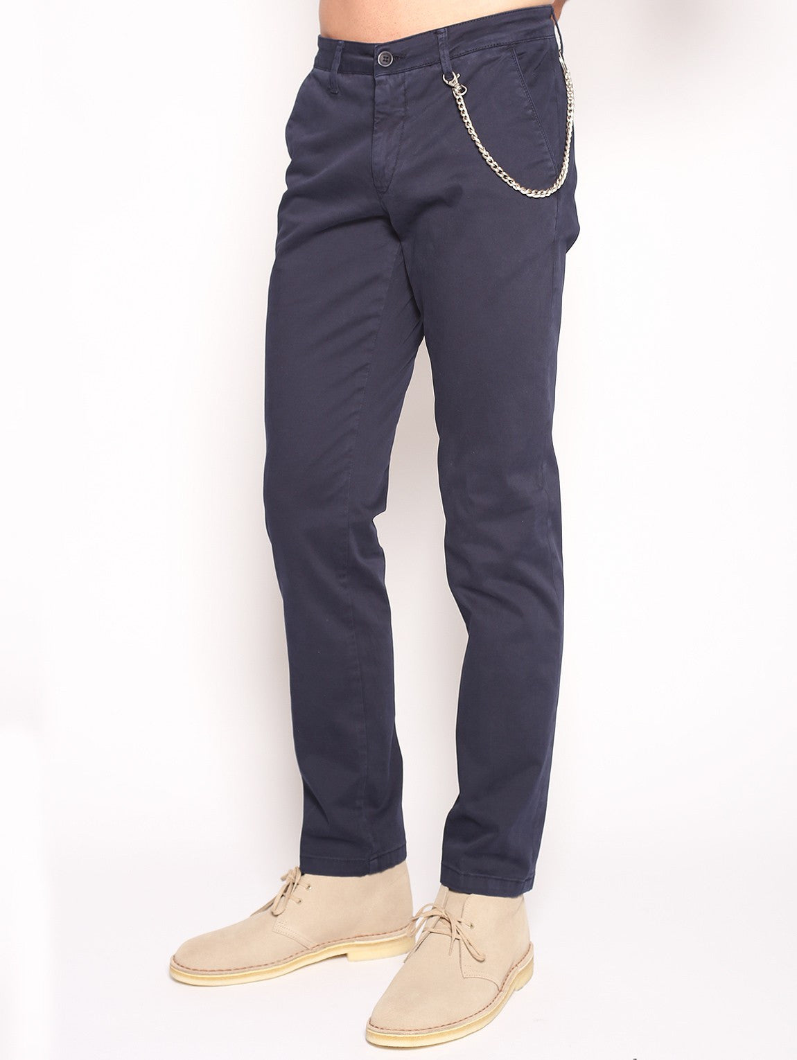 MANUEL RITZ - Pantaloni chino slim con catena BLU