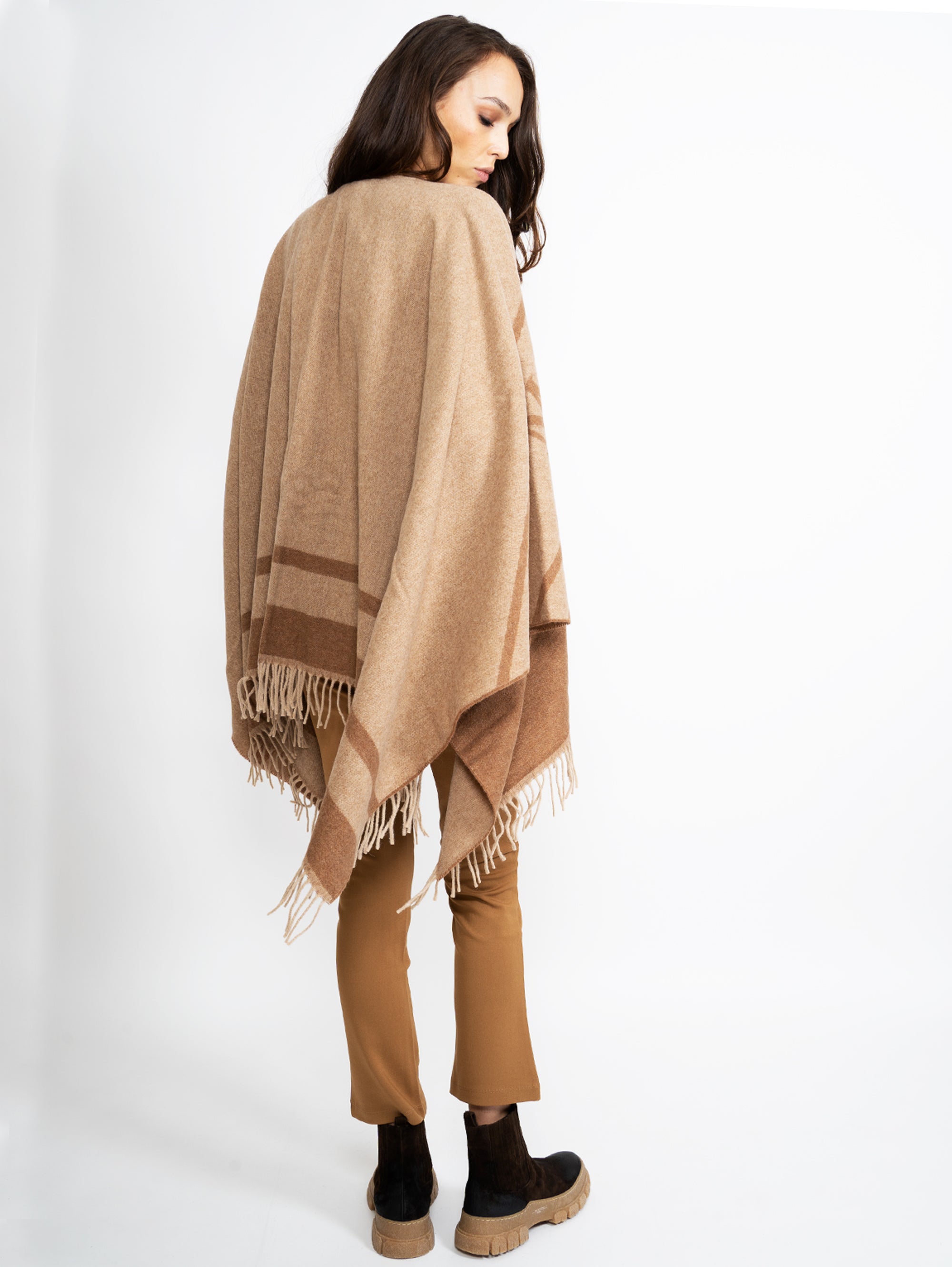 Poncho con Frange Albino/Cammello