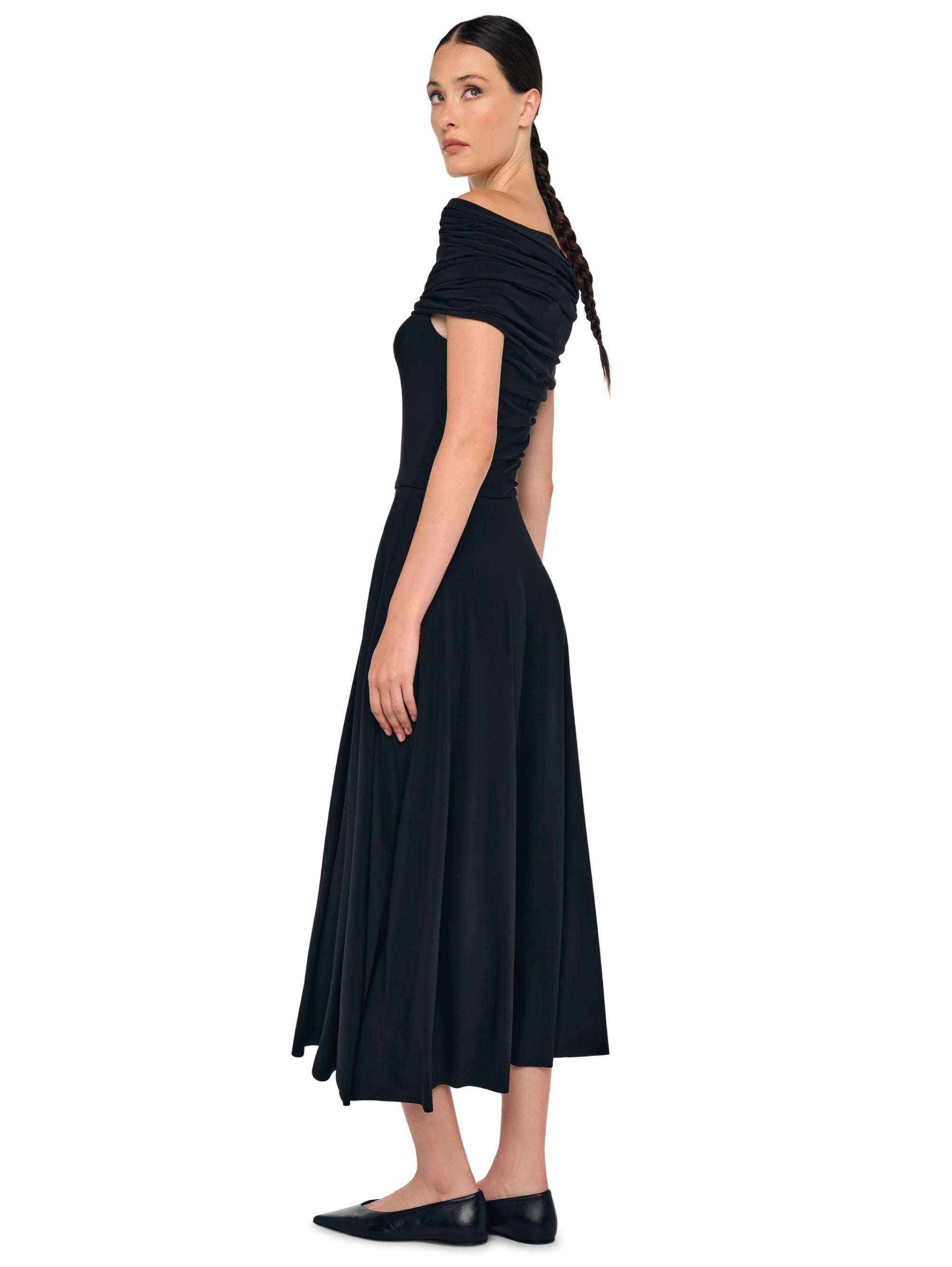 Abito midi in jersey elasticizzato con cappuccio da donna di Norma Kamali.