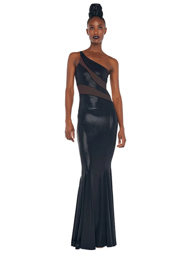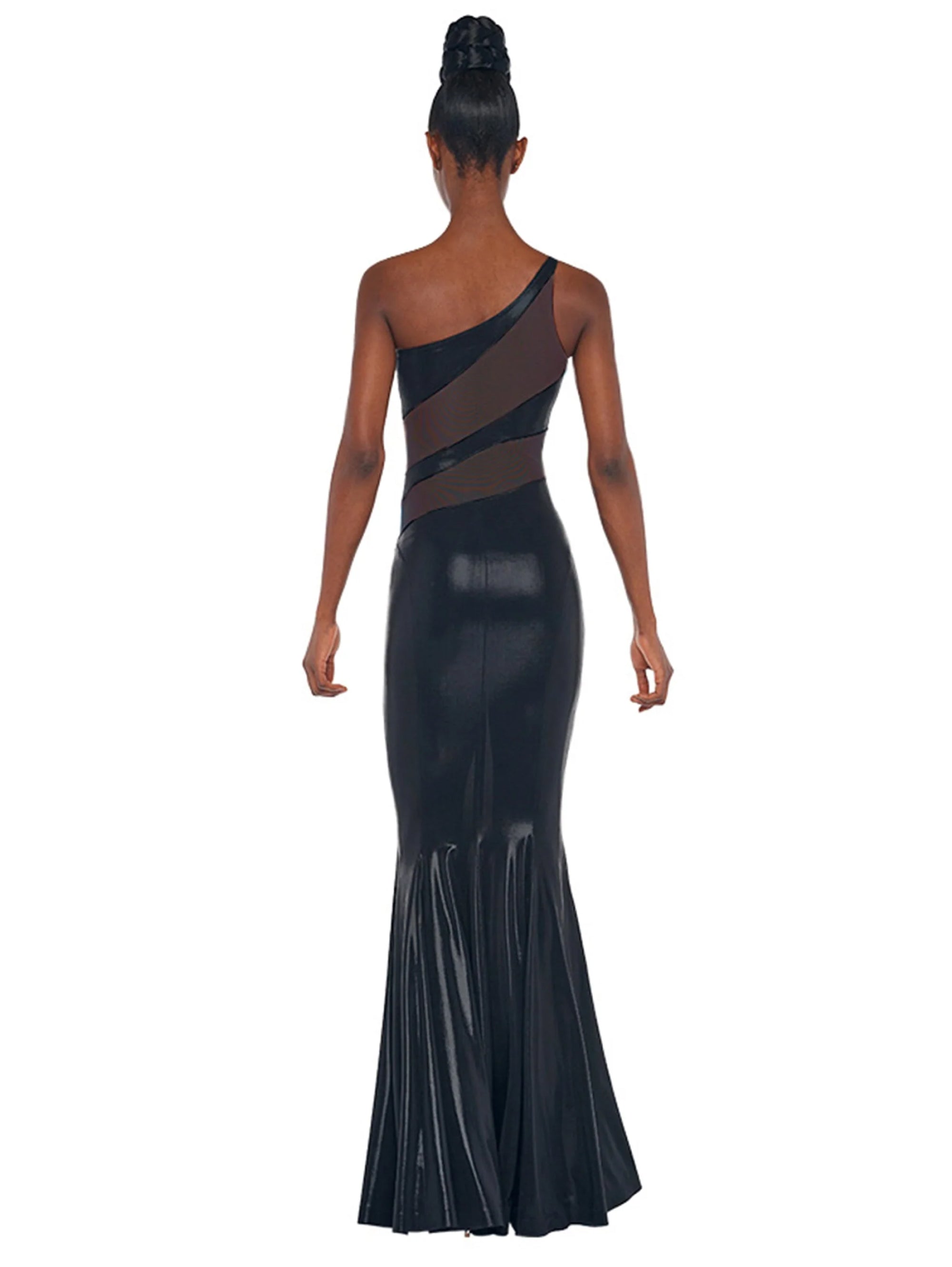 - Abito mono spalla elegante in tessuto mesh e lamé stretch a 4 vie