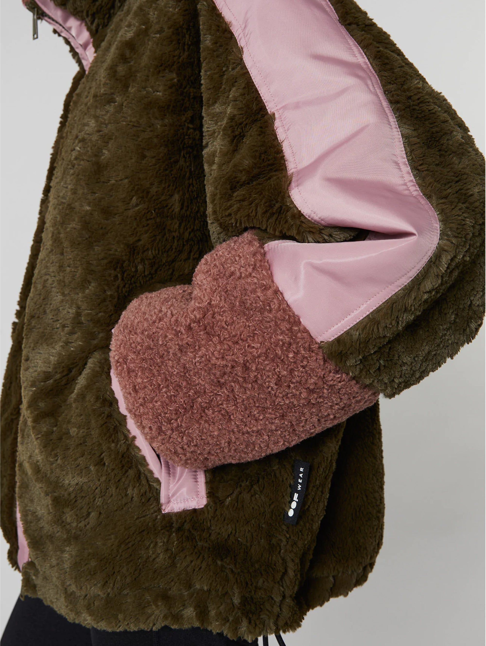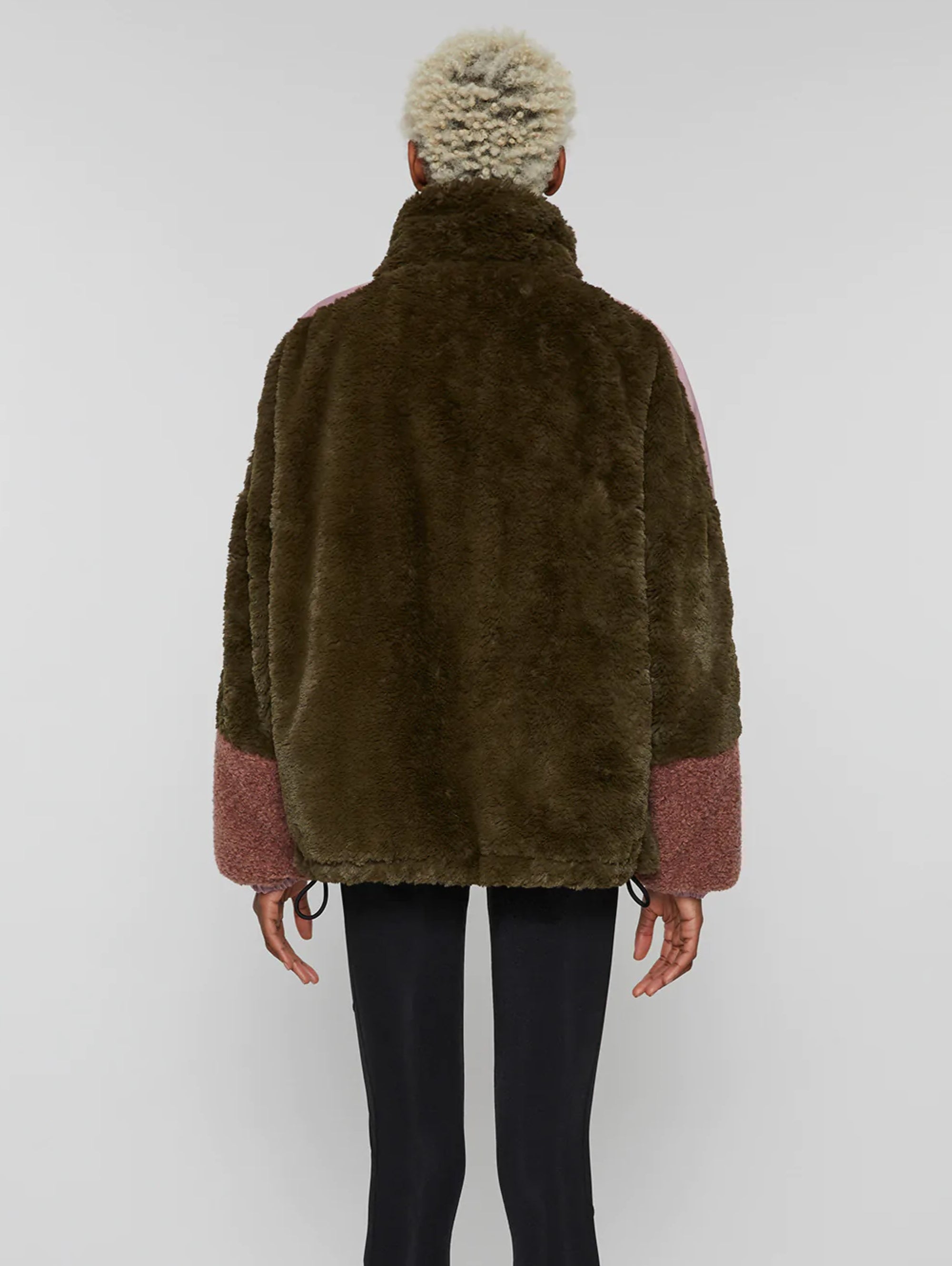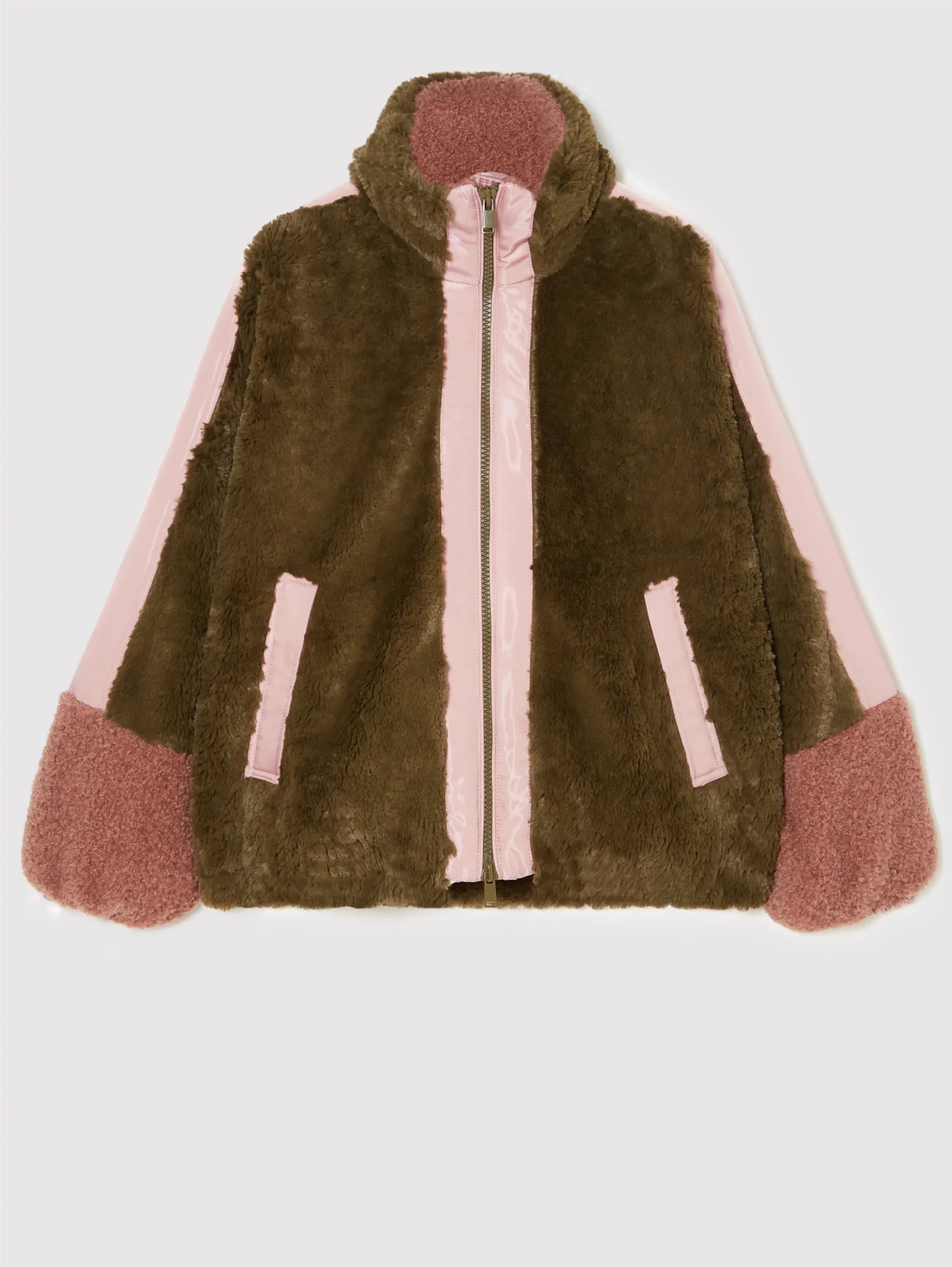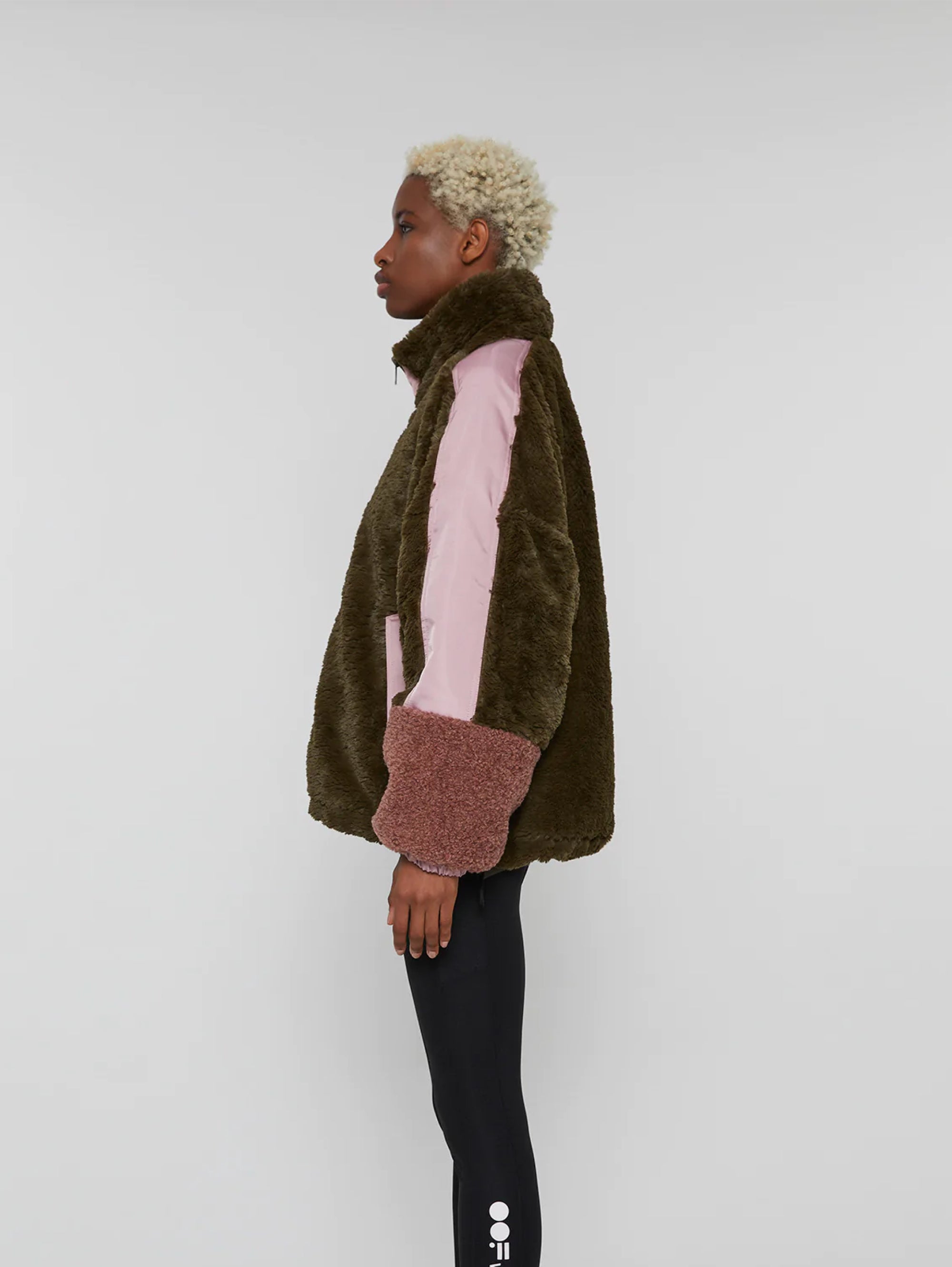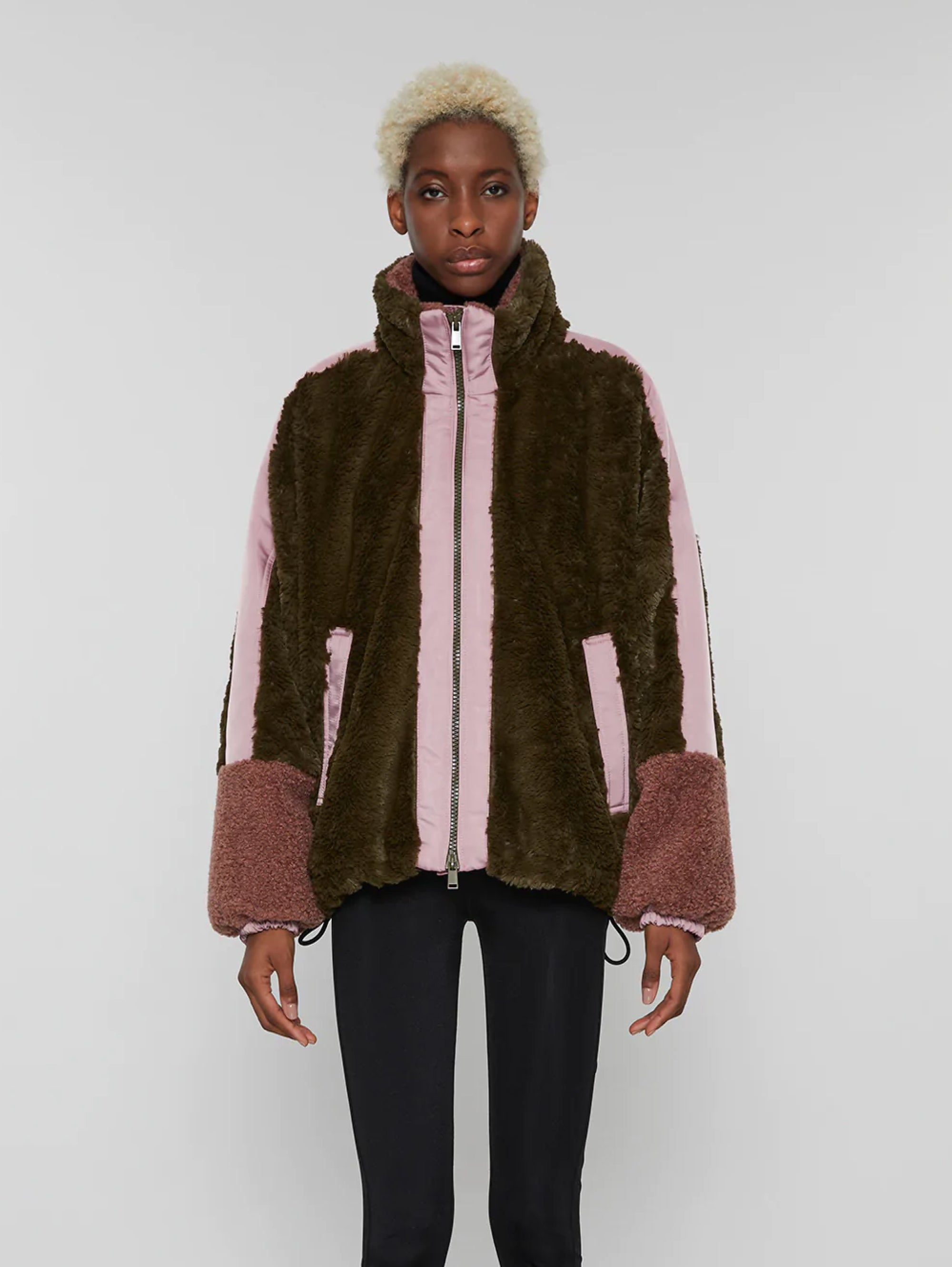 - Giacca corta eco fur stile Teddy con dettagli in nylon satinato.