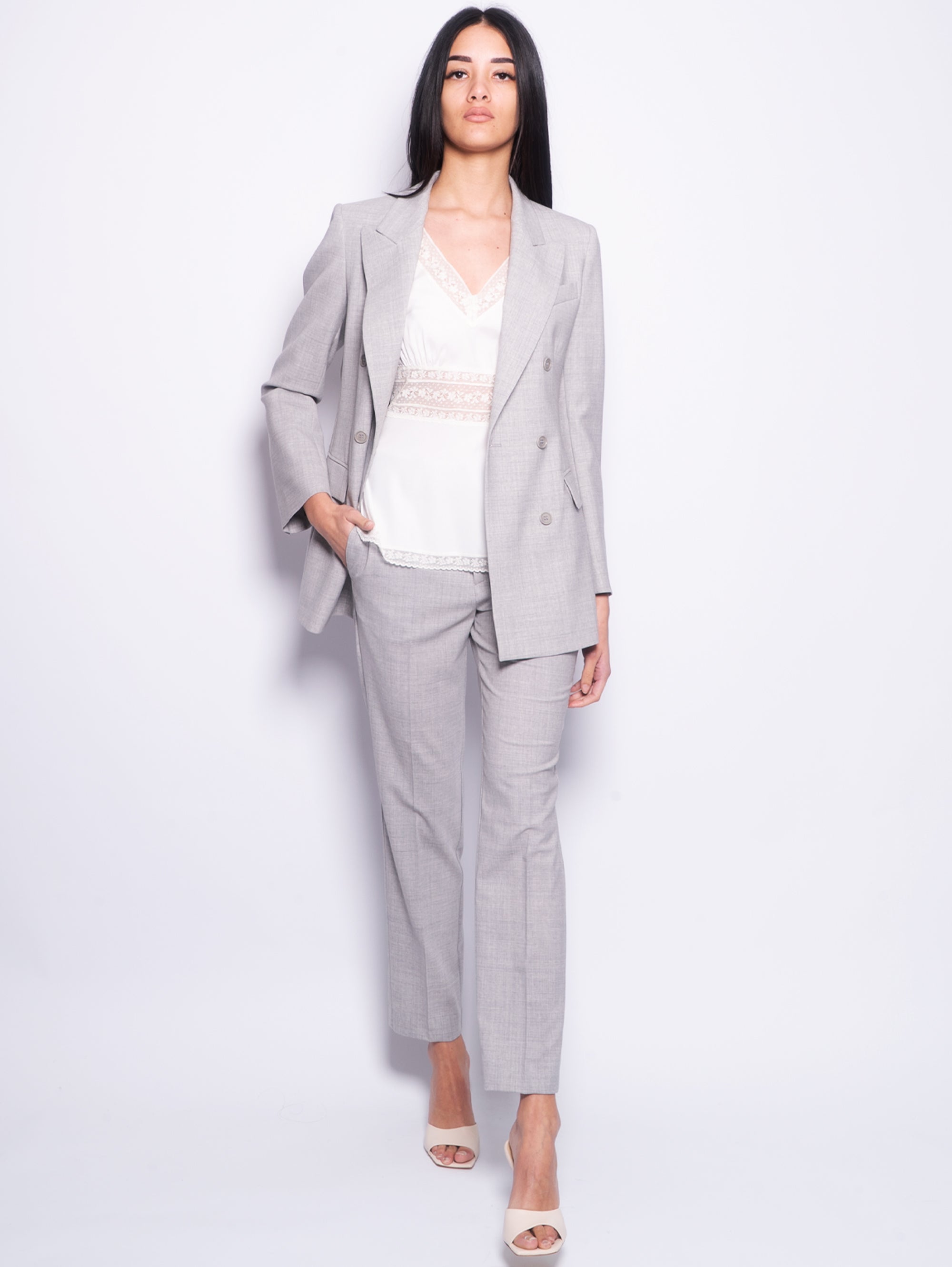 Pantaloni in Fresco Lana Grigio Mélange Chiaro