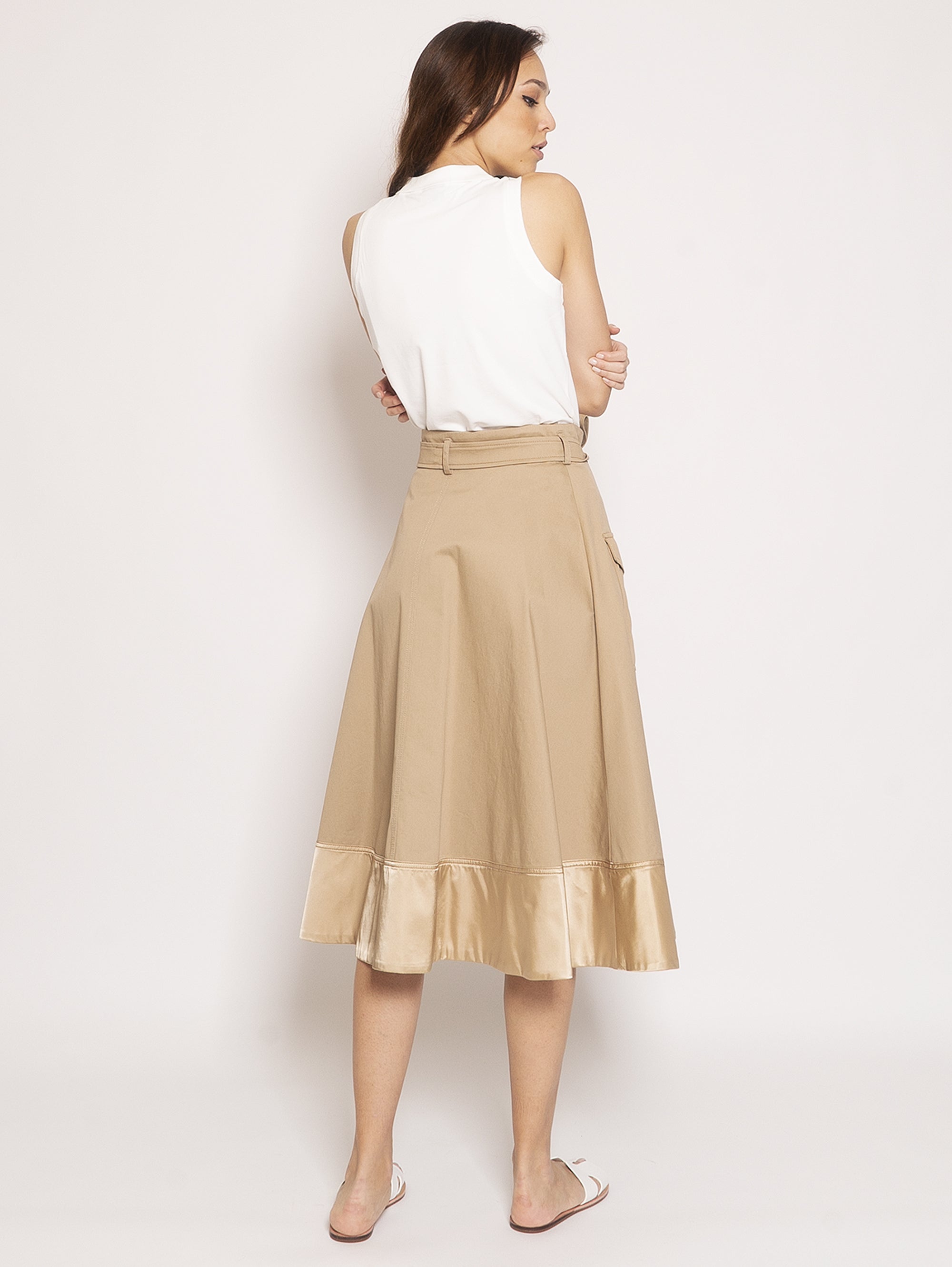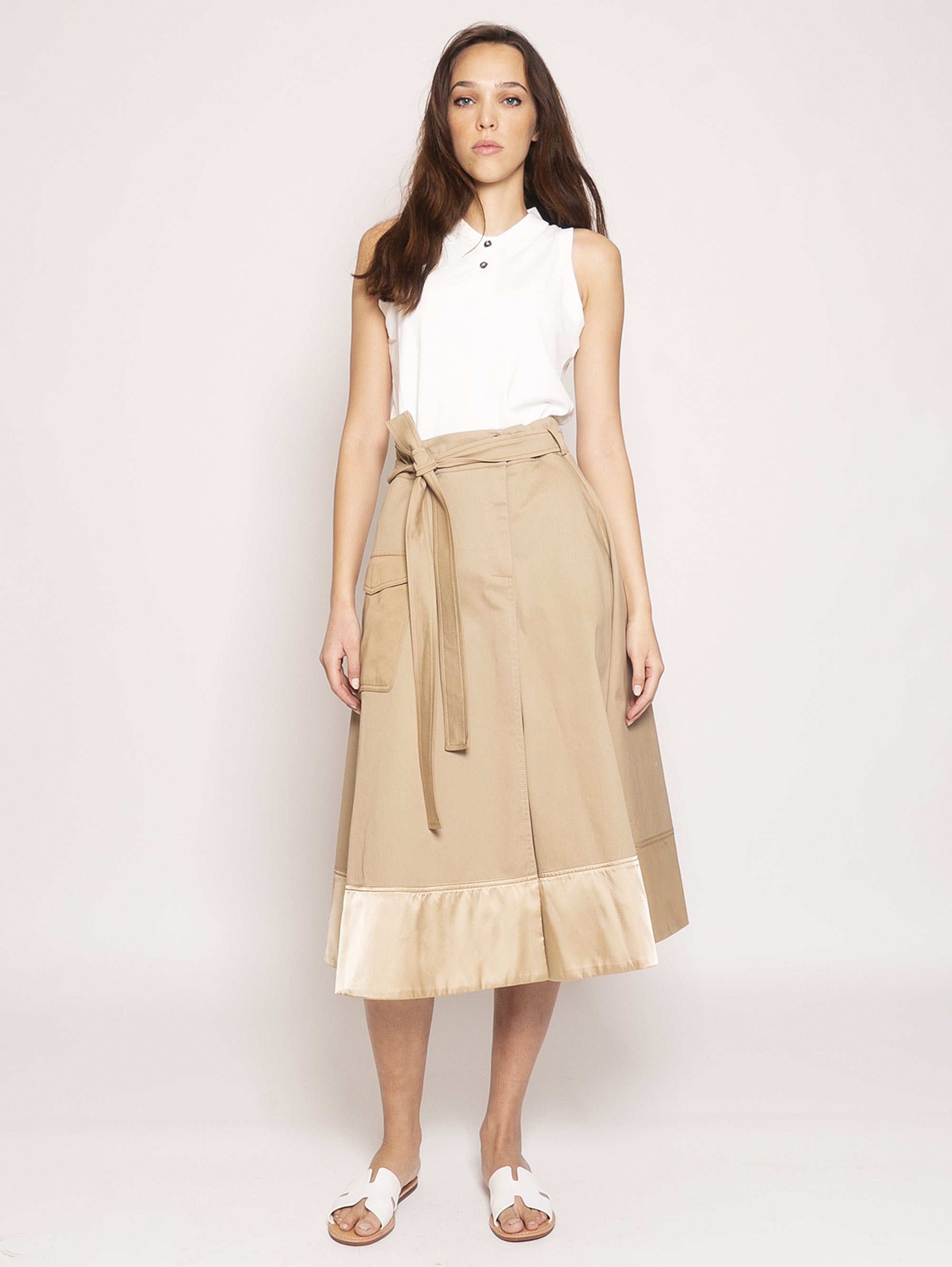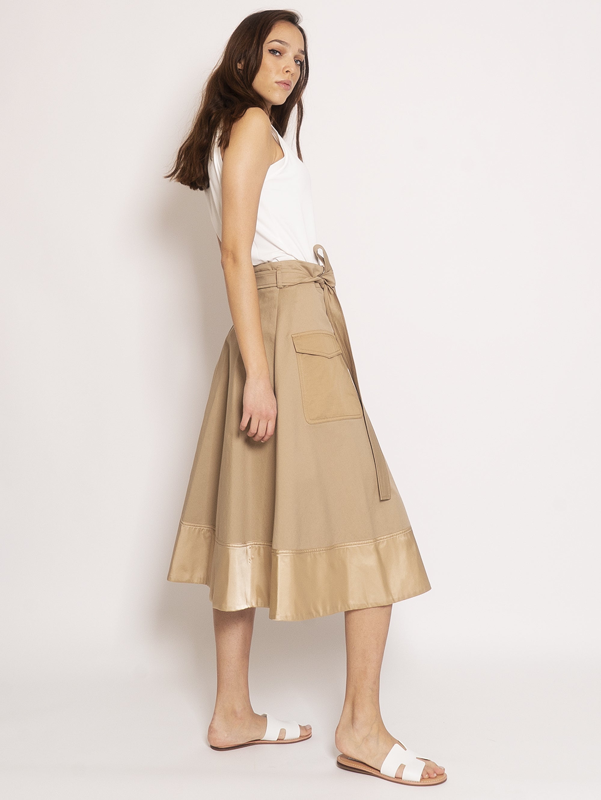 Gonna drill stretch lavato svasata in cotone elasticizzato da donna di Pinko.
