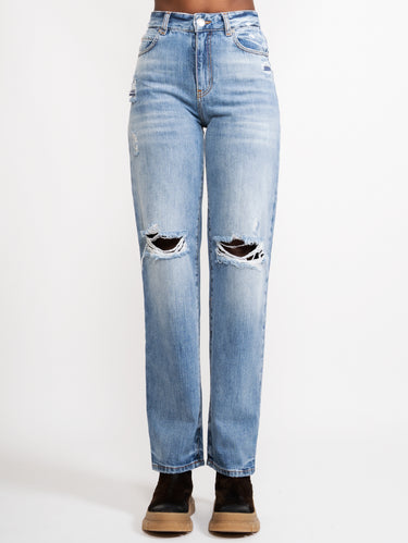 Jeans cinque tasche boyfriend fit con dettagli di strappi da donna di Pinko.