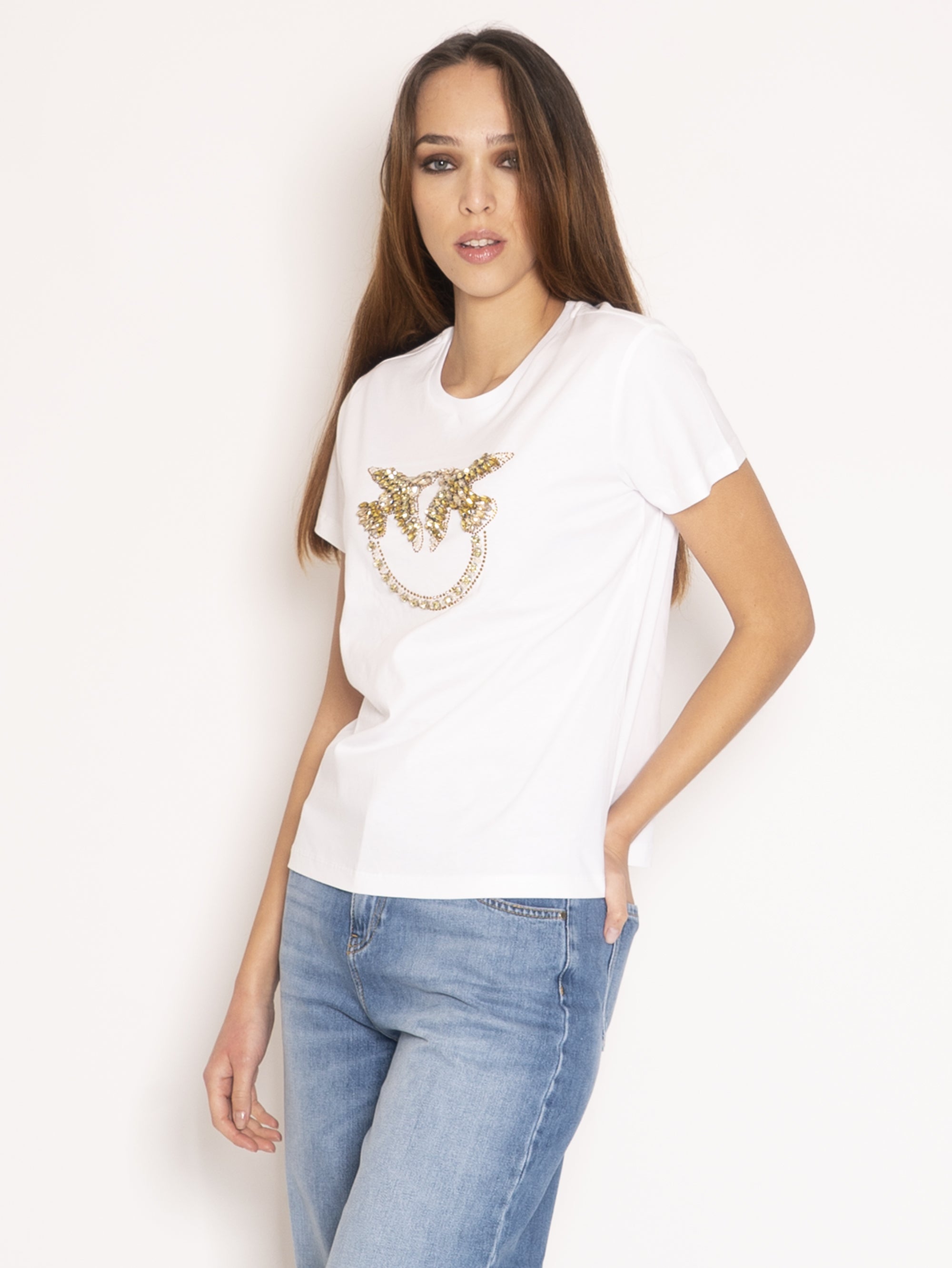 T-shirt con maxi Logo in strass Bianco/Topazio