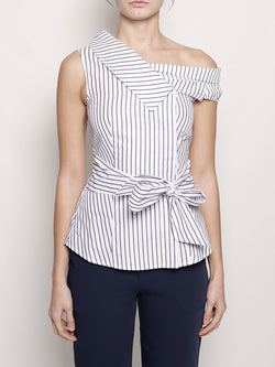 Top a righe in popeline Blu / Bianco