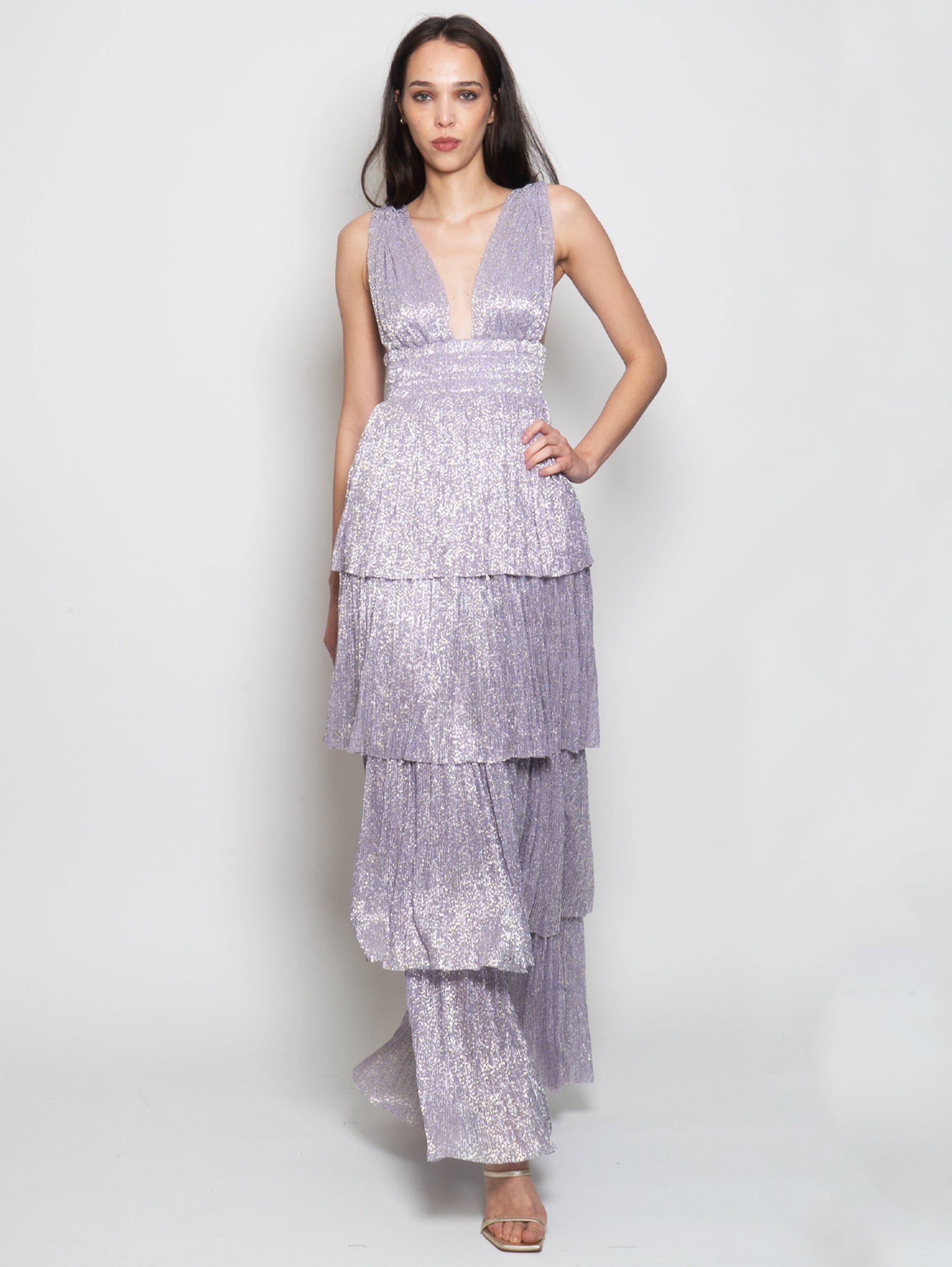 Abito lungo plissé con gonna a balze e scollo a V da da donna di Sabina Musayev.