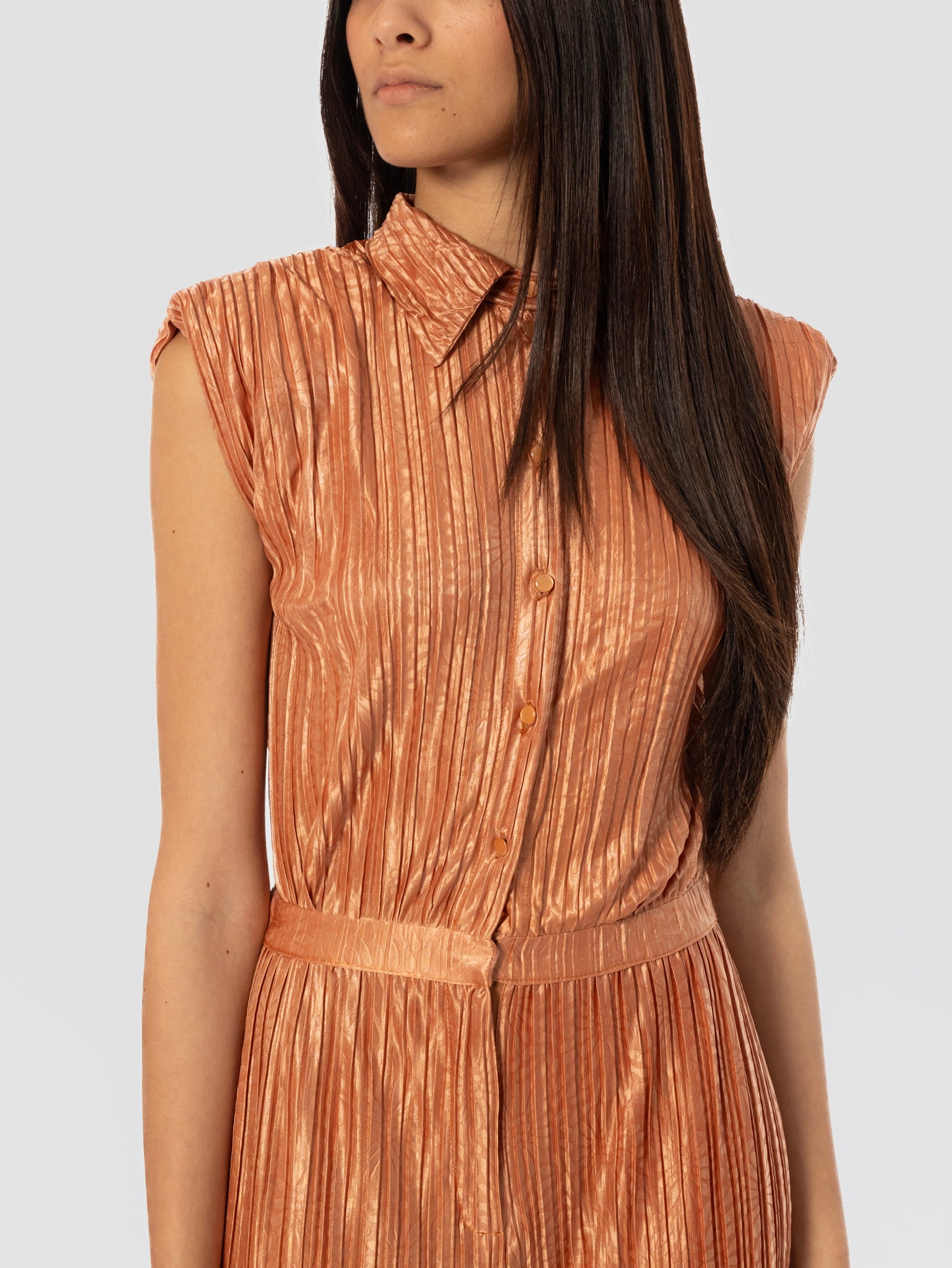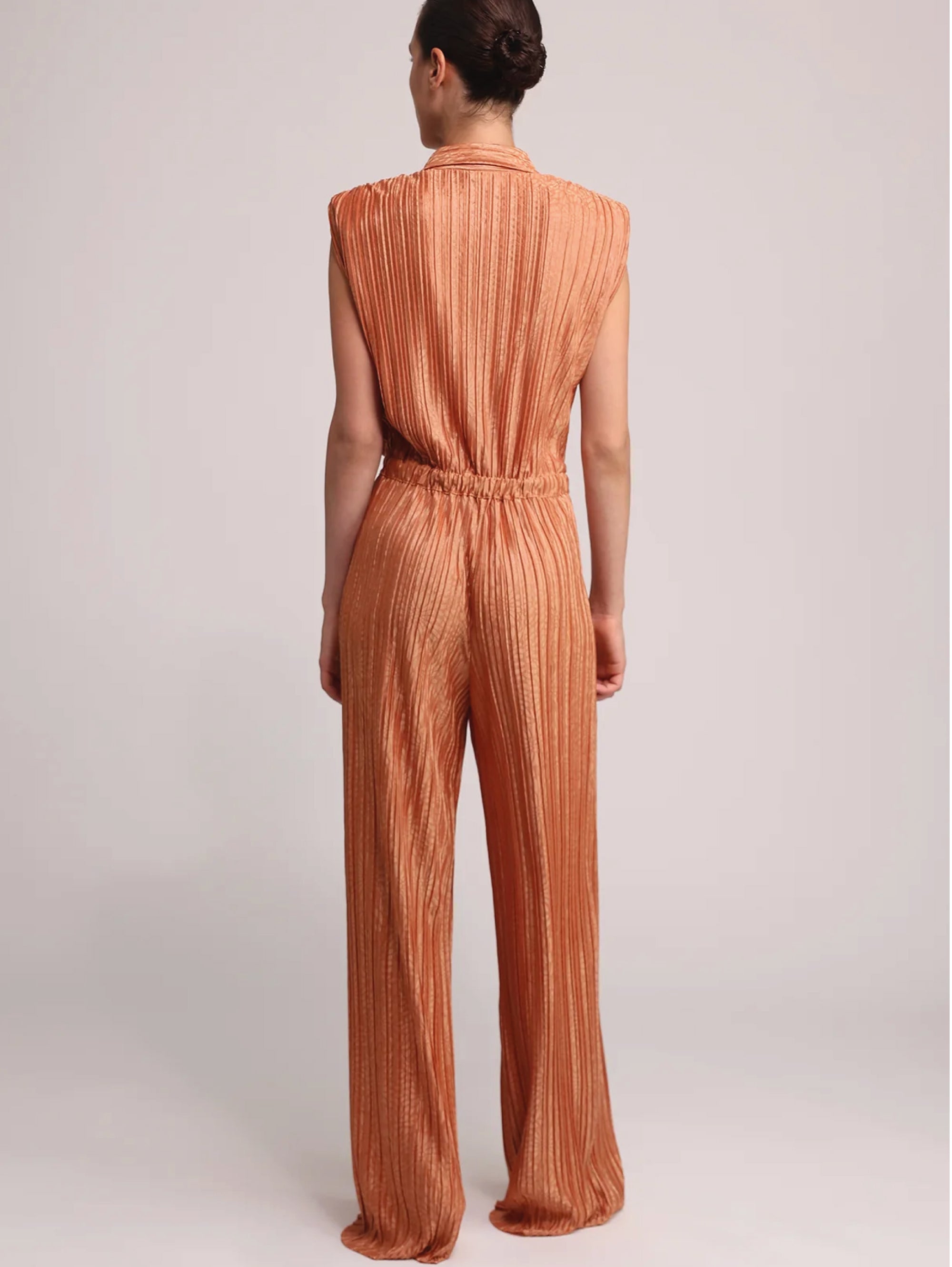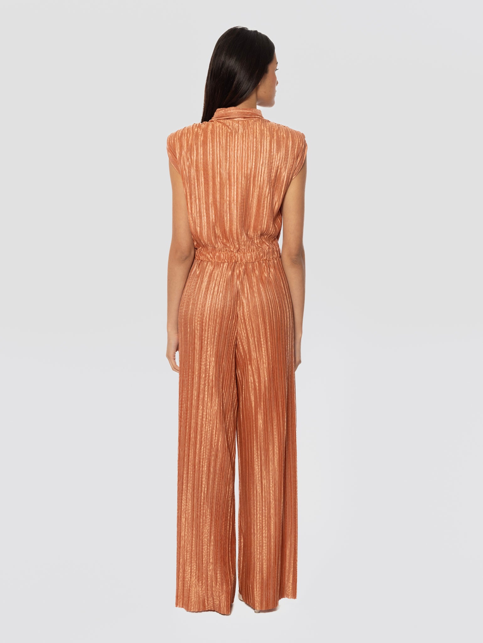 Tuta plissé con stampa floreale tono su tono modello Jeremiah da donna di Sabina Musayev.