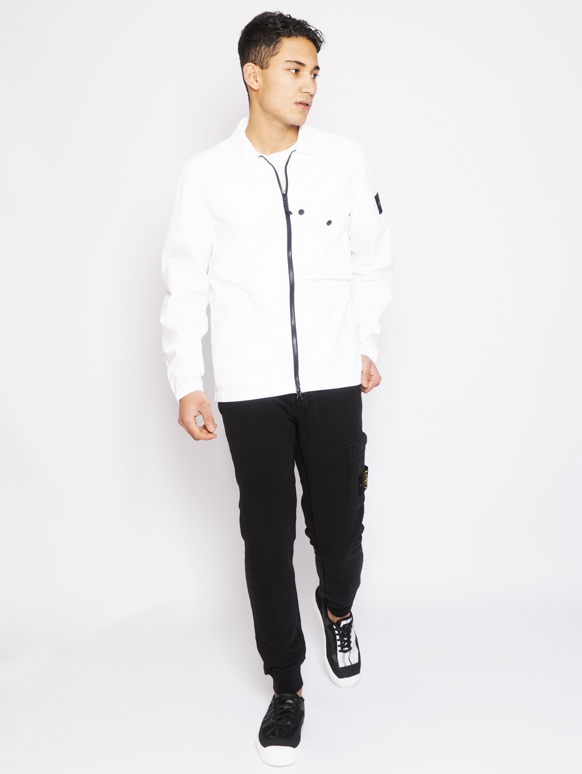 Camicia overshirt con pacth logo in cotone 'OLD' bianca da uomo di Stone Island