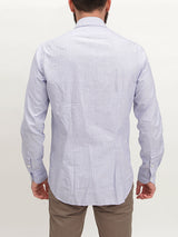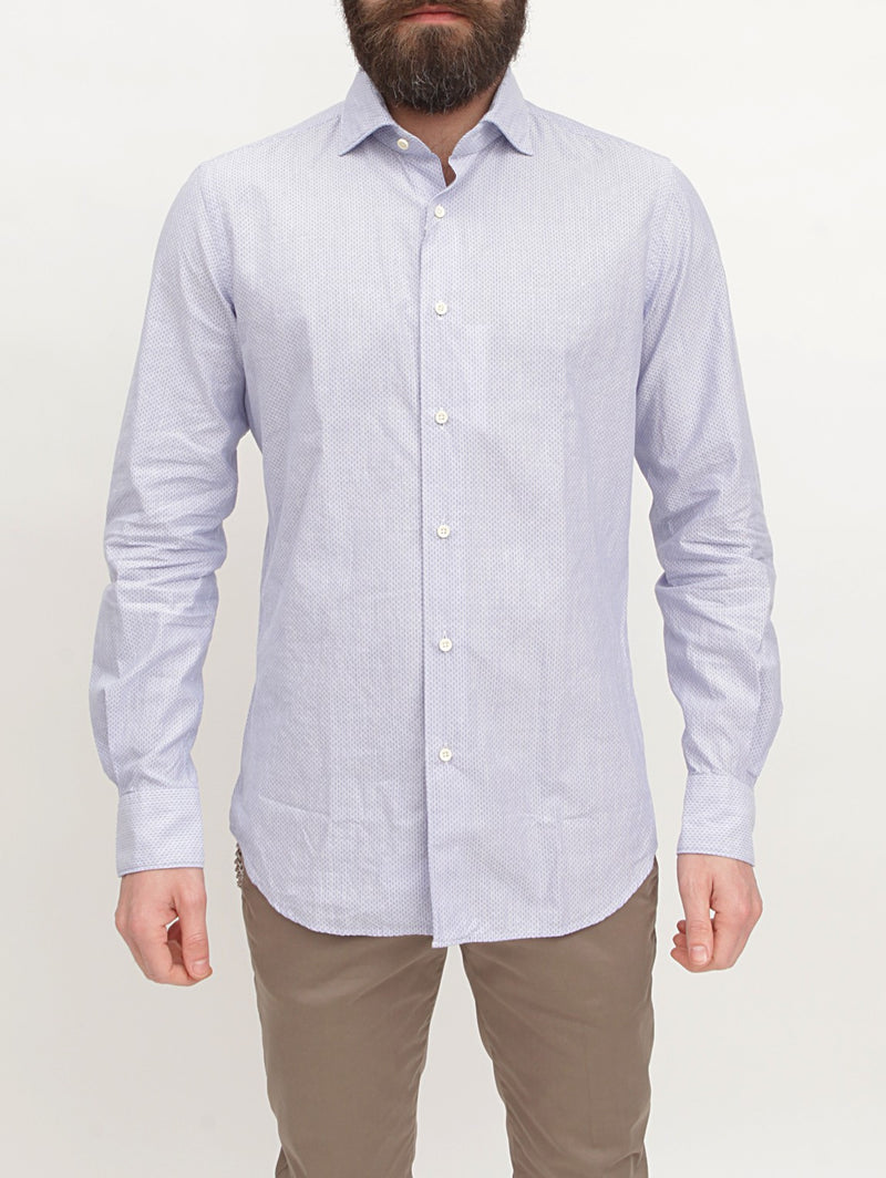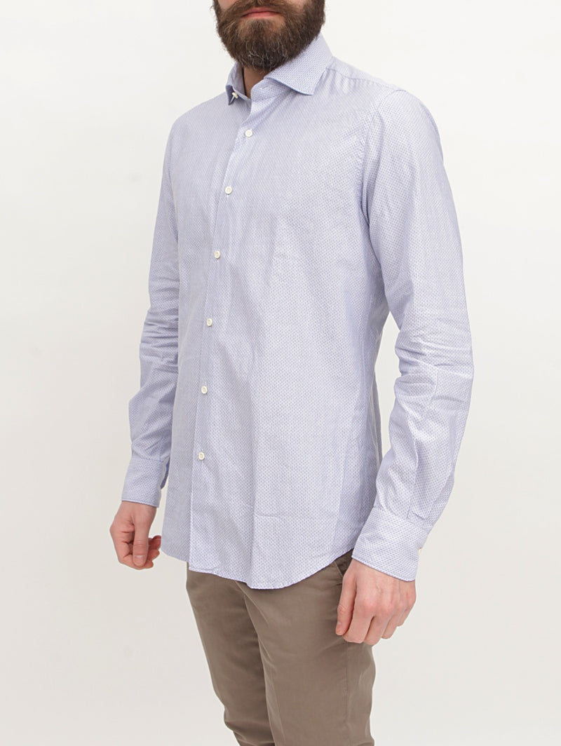 Camicia da uomo di Xacus modello 767 in cotone armaturato e misto lino con microfantasia di rombi. Dotata di collo classico, stecche estraibili e cuciture all'inglese.